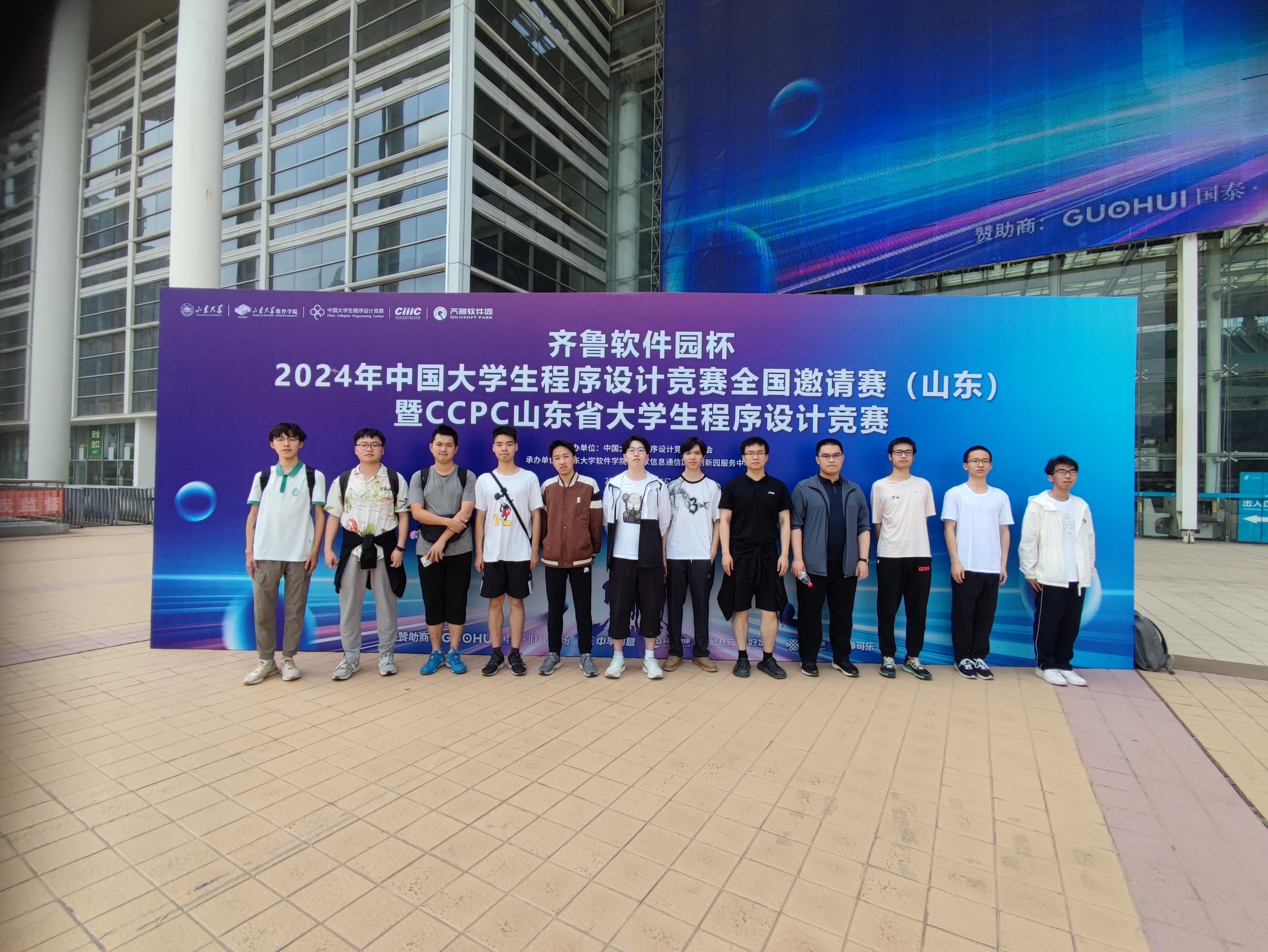 2024年CCPC全国邀请赛(山东)暨山东省大学生程序设计竞赛和CCPC全国邀请赛(广东)暨广东省大学生程序设计竞赛两场比赛竞争亦十分激烈。山东站共有近五百支队伍参赛,在五小时的角逐后,我校四支队伍斩获一金三银。其中由叶子宁、戴睿、王翔宇组成的“啥?”队获得了金奖,由彭田栩、牟星宇、陈鹏宇组成的“打饿了吃隔壁桌”队,由刘洲甫、赵一辰、黄俊超组成的“v我50带你看下北泽沼气动力猪头少年”队和由刘济尧、蒋济遥、陈奕帆组成的“你们可以抽象,但是别太抽象”队夺得了银奖。广东站则有近四百支队伍参赛,由金典、黄冠泽、钟星宇组成的“咖波脆”队获得了金奖,由王学康、唐珈玮、刘恒溥组成的“结束乐队”队获得了银奖。