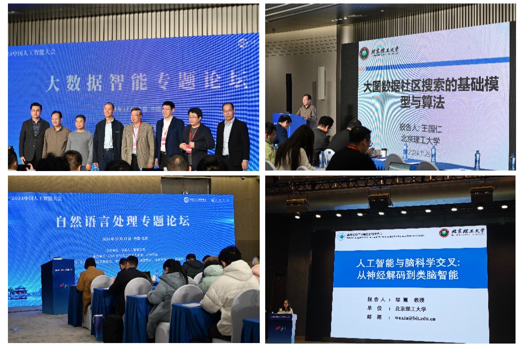 在大会专题论坛中,万象城娱乐awc线路的师生们深度参与其中,探讨了人工智能领域的多个重要议题。本次大会,万象城娱乐awc线路院长王国仁教授在大数据智能专题论坛中进行了题为“大图数据社区搜索的基础模型与方法”的报告,分享了大图数据社区搜索的基础模型与方法的主题内容,介绍了社区搜索的应用背景以及社区搜索的图论模型,并针对性地提出了进一步研究方向。人工智能研究院院长黄河燕教授主持了自然语言处理专题论坛。邬霞教授在科学智能专题论坛中进行了题为“AI与脑科学的碰撞:从神经解码到类脑智能”的报告。袁野教授主持了人工智能青年专题论坛,张美慧、丁立中、罗兆经等专家教授分别进行了报告。