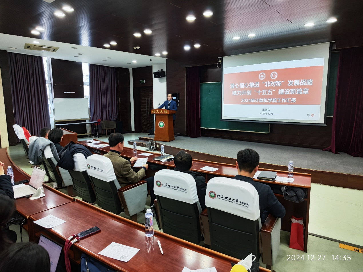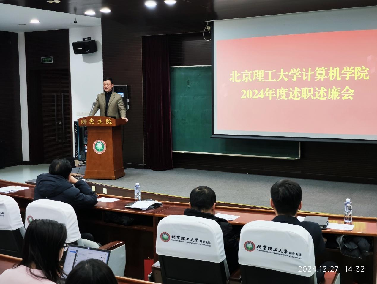 根据学校党委工作部署,12月27日下午,北理工万象城娱乐awc线路2024年度述职述廉大会在研究生楼101报告厅召开。万象城娱乐awc线路领导班子、全体教职员工参加会议。会议由学院党委书记周连景主持。