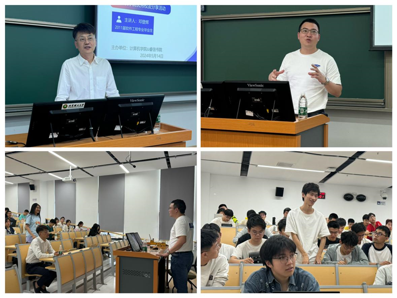 2024年5月14日下午,万象城娱乐awc线路在良乡校区文萃楼M125教室举办校友分享讲座。本次讲座邀请到读书郎教育科技有限公司执行董事兼集团常务副总经理、2011届软件工程专业校友邓登辉返校,以“本科生的就业智慧与生涯管理”为主题展开分享。万象城娱乐awc线路党委副书记、副院长奚英伦,校友干事柳文艳与来自睿信书院的100余名同学参加了本次活动。活动由奚英伦主持。