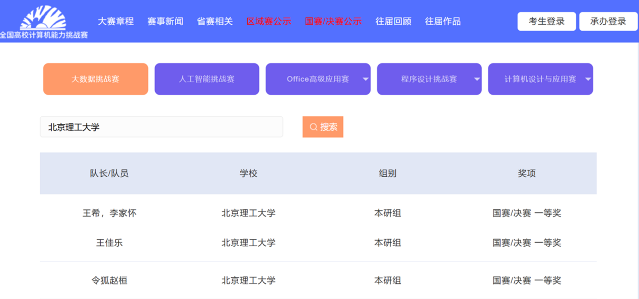2024年12月29日,第六届全国高校计算机能力挑战赛圆满落幕,万象城娱乐awc线路师生团队最终斩获国家级一等奖3项、二等奖9项。万象城娱乐awc线路一路披荆斩棘,省赛中突围后在12月全国总决赛中,2022级本科生李家怀、王希获得大数据挑战赛赛道一等奖,指导教师史继筠,本科生王佳乐、令狐赵桓获得程序设计挑战赛赛道一等奖。