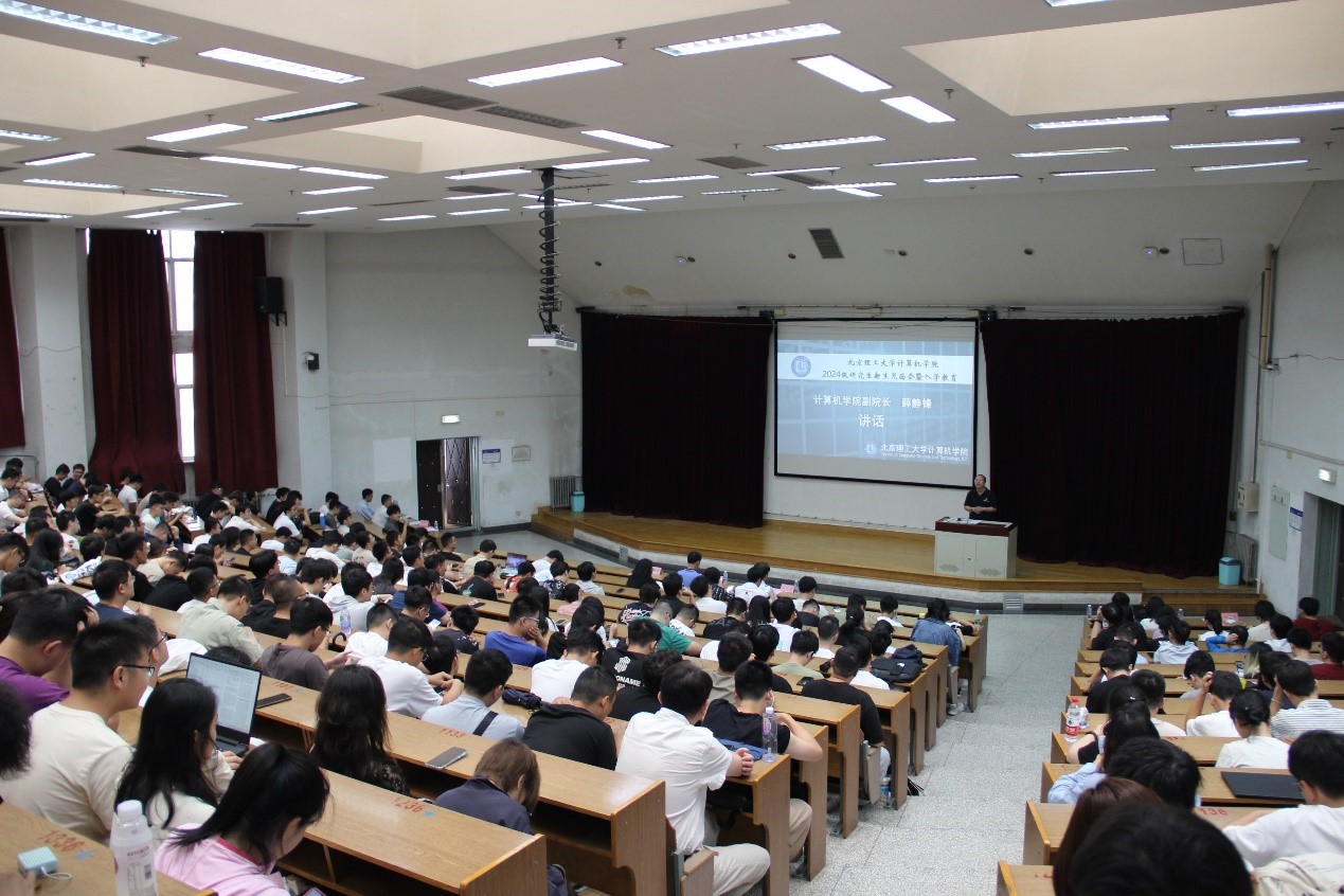 贾宇琦向学院老师们表达了崇高的敬意和衷心的感谢。他表示,计算机科学的力量正以前所未有的速度改变着世界,每一项技术的突破都在深刻地影响着人类社会的每一个角落,相信同学们将为未来的科技进步和社会变革贡献自己的智慧和力量。他激励同学们重视综合素质的提高,积极参与志愿活动,回馈社会,并祝愿所有的同学们学业有成,书写属于自己更加精彩的奋斗篇章。