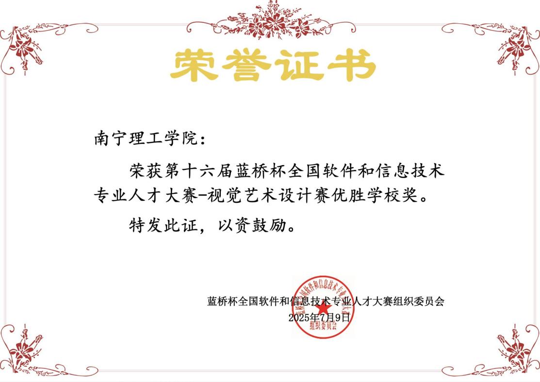 蓝桥杯大赛连续五年入选全国普通高校学科竞赛排行榜。艺术与传媒学院自2024年起组织师生参与该赛事,受到学校领导高度重视与支持。该竞赛成果彰显了学校在教学改革、创新实践能力培养及与行业需求高度契合方面的成效,也体现了KY开元学生卓越的设计素养与创新能力。