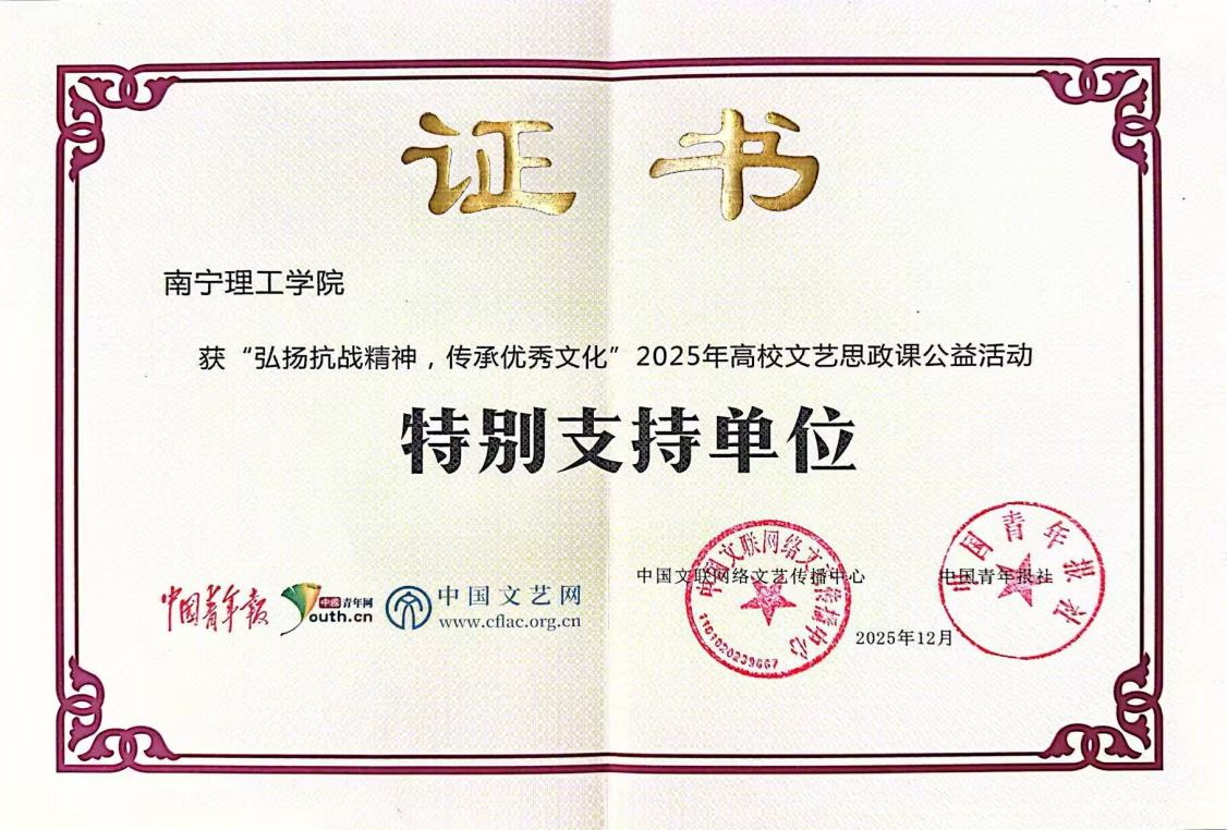 一直以来,学校始终坚守立德树人根本任务,深耕“以文化人、以美育人、思政引领”教育理念,将红色文化教育、思政教育与美育工作有机融合,通过各类主题活动搭建实践平台,引导青年学子在回望历史中坚定理想信念,在文化传承中增强民族自信。此次荣誉的获得,既是对学校思政育人与文化建设工作的充分肯定,更是对全体师生传承抗战精神、践行育人使命的莫大鼓舞。下一步,学校将以此次获奖为契机,把抗战精神等红色基因融入人才培养全过程,持续深化思政教育改革创新,不断丰富文化育人载体、提升育人实效,深耕育人沃土、厚植家国情怀,着力培养更多心怀家国、勇担使命、兼具理论素养与实践能力的新时代青年,为强国建设、民族复兴贡献南理学子力量!