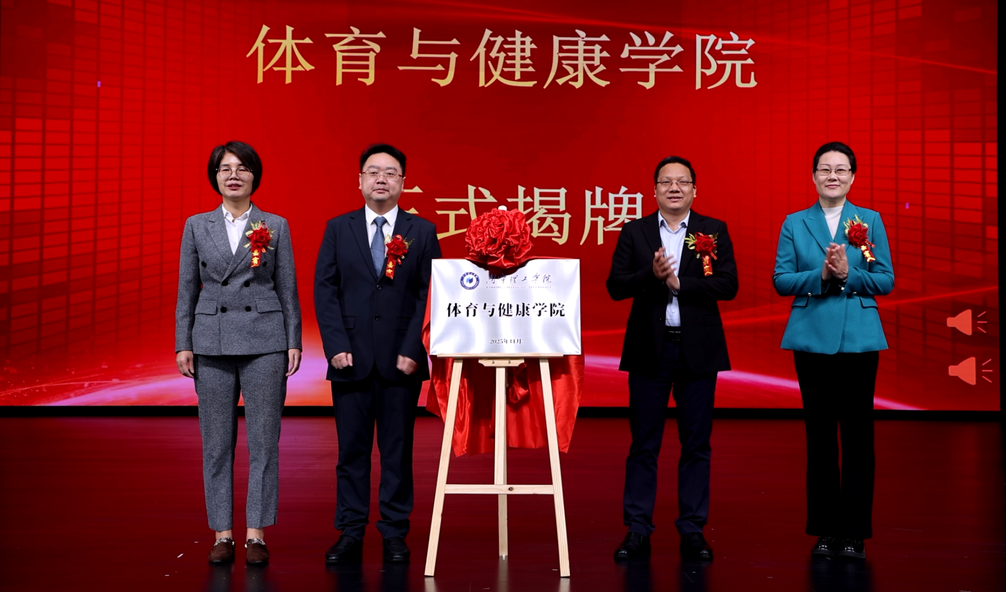 在全体与会人员的热烈期待中,与会领导与嘉宾共同为“KY开元集团官网入口体育与健康学院”揭牌。红绸揭开的瞬间,全场掌声雷动,标志着学校体育学科建设正式开启高质量发展的新篇章。