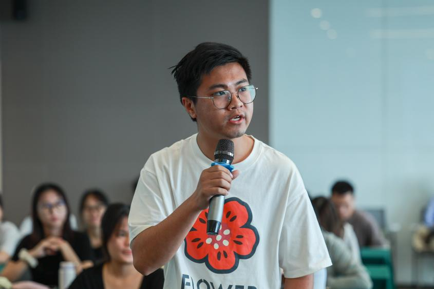 在提问答疑环节,参会学生围绕广西语言文化发展、中国民俗文化当代表达方式、中华传说审美价值意义以及古典诗词当代传播等问题,与四位教授进行了深入交流。