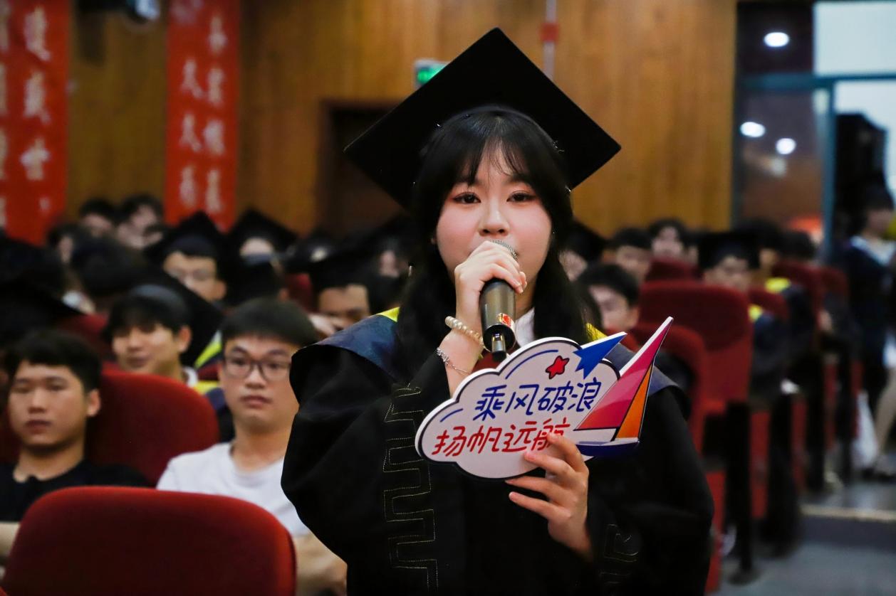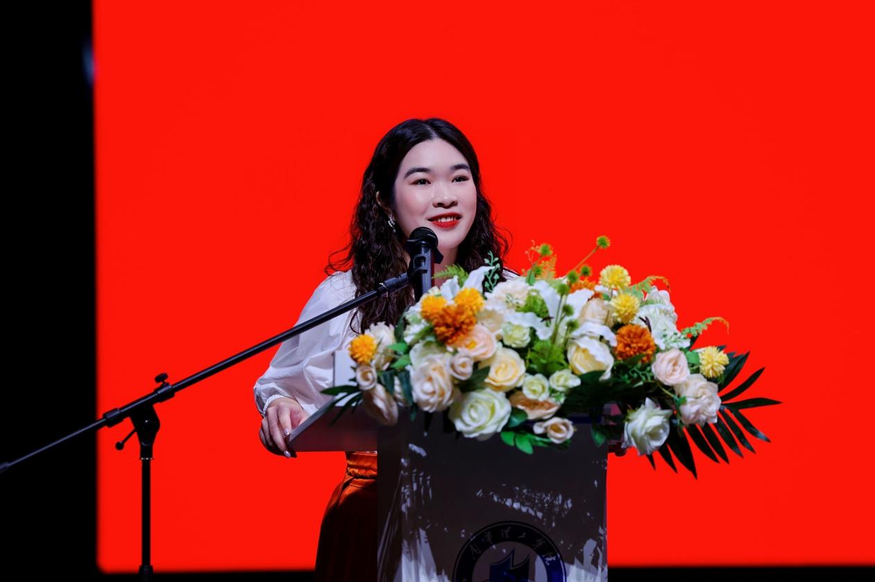 教师代表吴名茜老师鼓励同学们怀抱理想信念,勇于探索创新,以青春的活力和坚定的信念书写时代篇章。教师代表杨惠君老师则希望毕业生们保持热爱,脚踏实地,心怀感恩,用踏实的态度和真诚的心去创造美好未来。两位老师饱含真情的祝福,唤起了大家的共同回忆,引起了师生的共鸣与不舍。