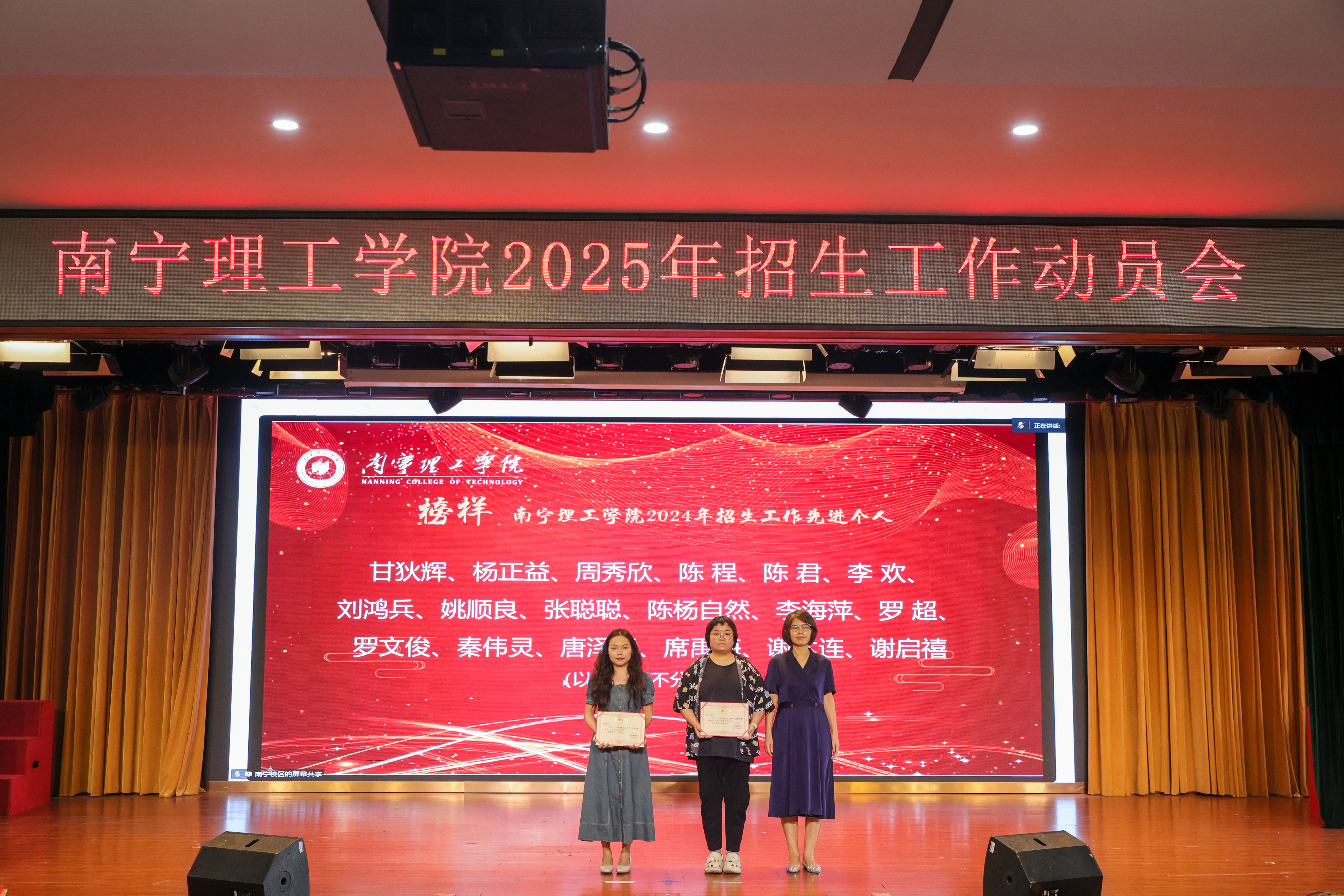 6月12日,学校2025年招生工作动员会于南宁校区东盟大剧院和桂林雁山校区1626报告厅同步举行。学校领导、全体教职工参加了本次会议。会议以“全员同心、接续奋斗、共同推动学校生源规模质量实现新突破”为主题,总结成绩、表彰先进、部署任务。会议由校长助理郑方兵主持。