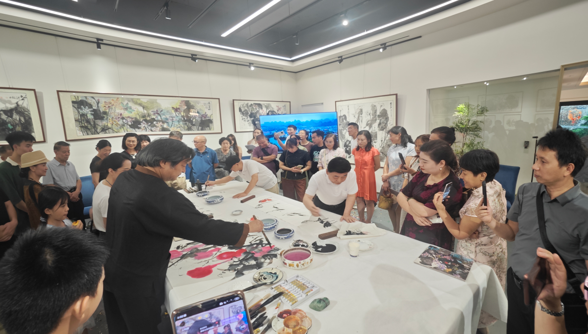 剪彩仪式后,黄家城、徐家珏、吴朝贵、唐道一、葛俊杰、陈苏、王善民、马红、武朝利、石春秀、武丹等十余位艺术家即兴挥毫泼墨,共同创作出《福来图》等作品。桂林市女画家协会主席马红女士感慨:“这种打破边界的集体创作,正是'文脉共生'的生动实践”。