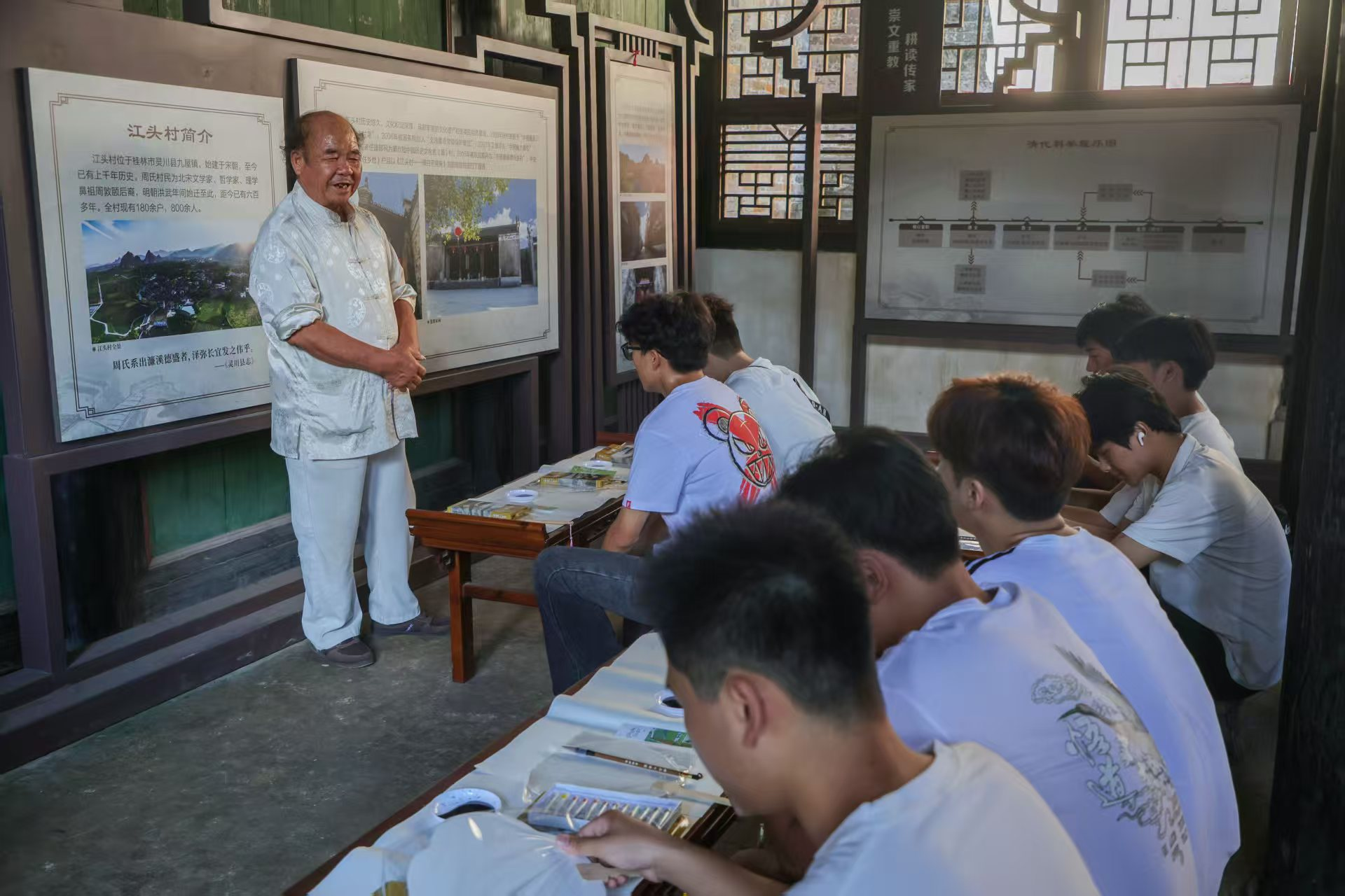 实践环节尤为生动。学生以毛笔书写“廉”字警句,在一笔一画间加深对廉洁文化的理解;还在团扇上绘制象征清廉的莲花、翠竹等图案,将艺术创作与廉政教育融为一体。“这不仅是一次文化体验,更是一堂深刻的价值观教育课。”周声海同学表示,“江头村之行,让我明白身处诱惑中,当以莲为镜,守住底线、抵住贪欲。”