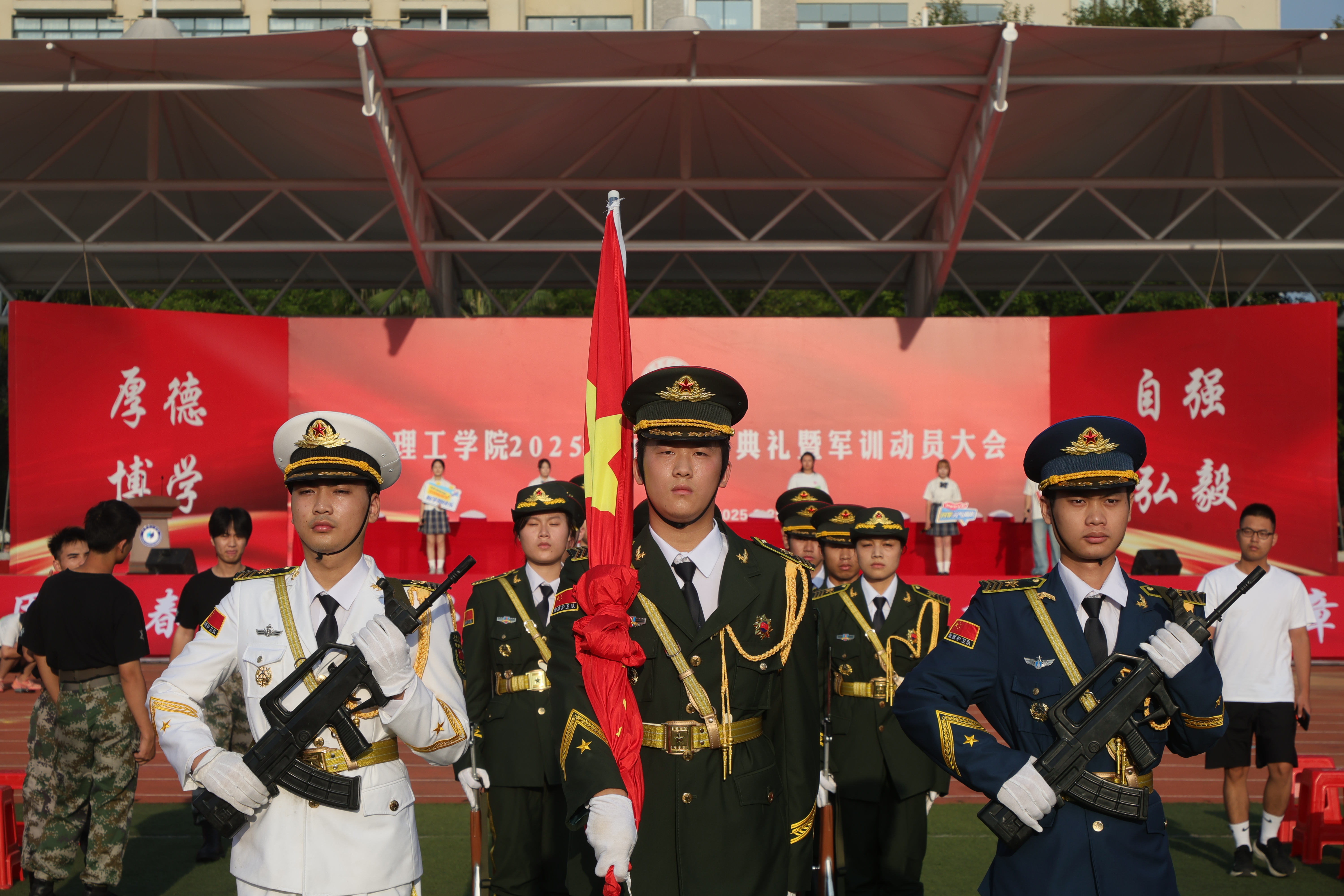 随后,2025级全体新生进行庄严宣誓,表达了恪守校训、立志成才、报效祖国的坚定决心。大会在激昂的《中国人民解放军军歌》中圆满落幕。