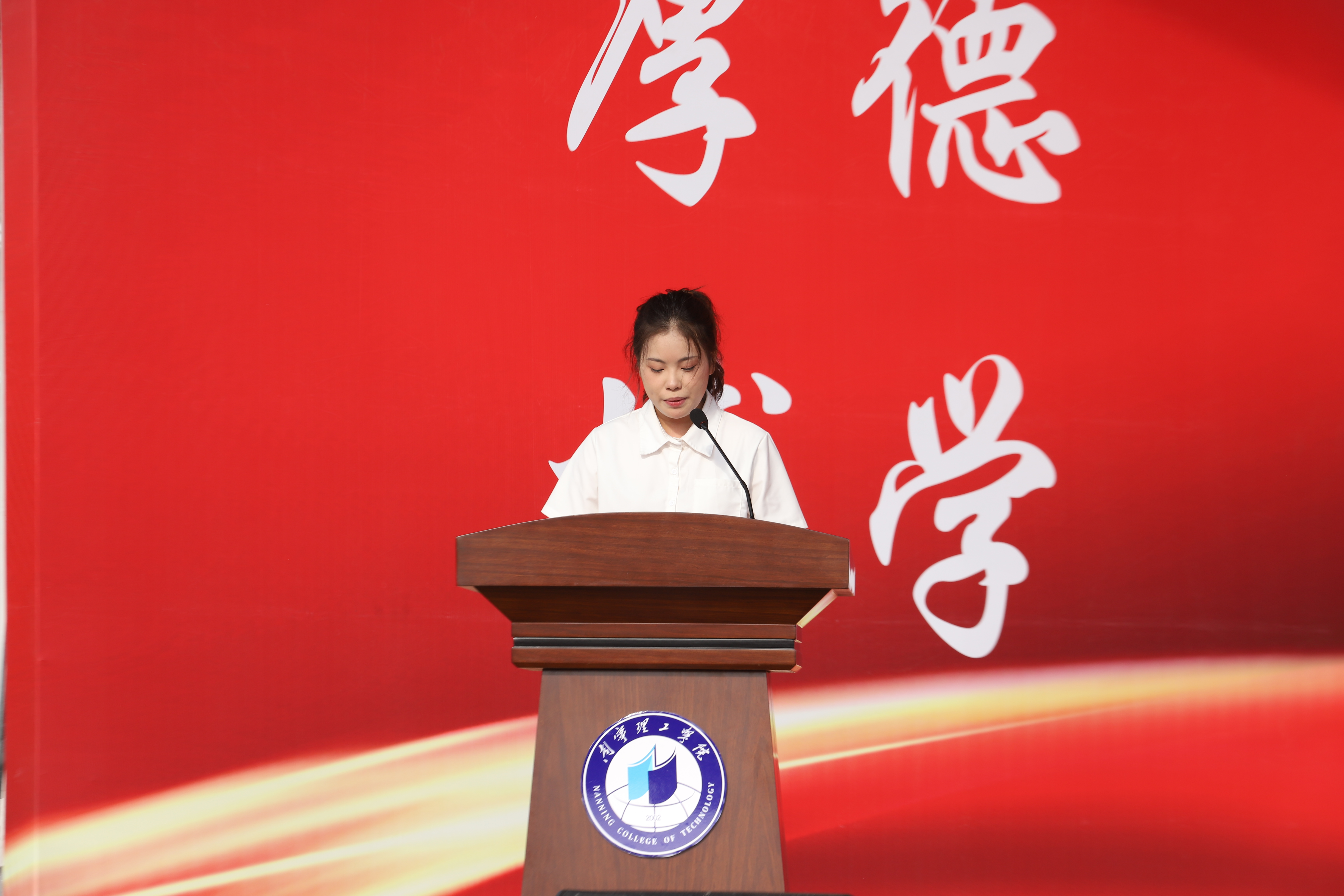 信息工程学院计算机科学与技术专业刘莹莹同学作为新生代表发言。她在发言中表达了踏入大学校园的喜悦与憧憬,并号召全体新生筑牢精神根基、勇攀科学高峰、淬炼报国之志,胸怀理想、脚踏实地,将个人成长融入国家发展,以饱满热情开启大学新篇章。