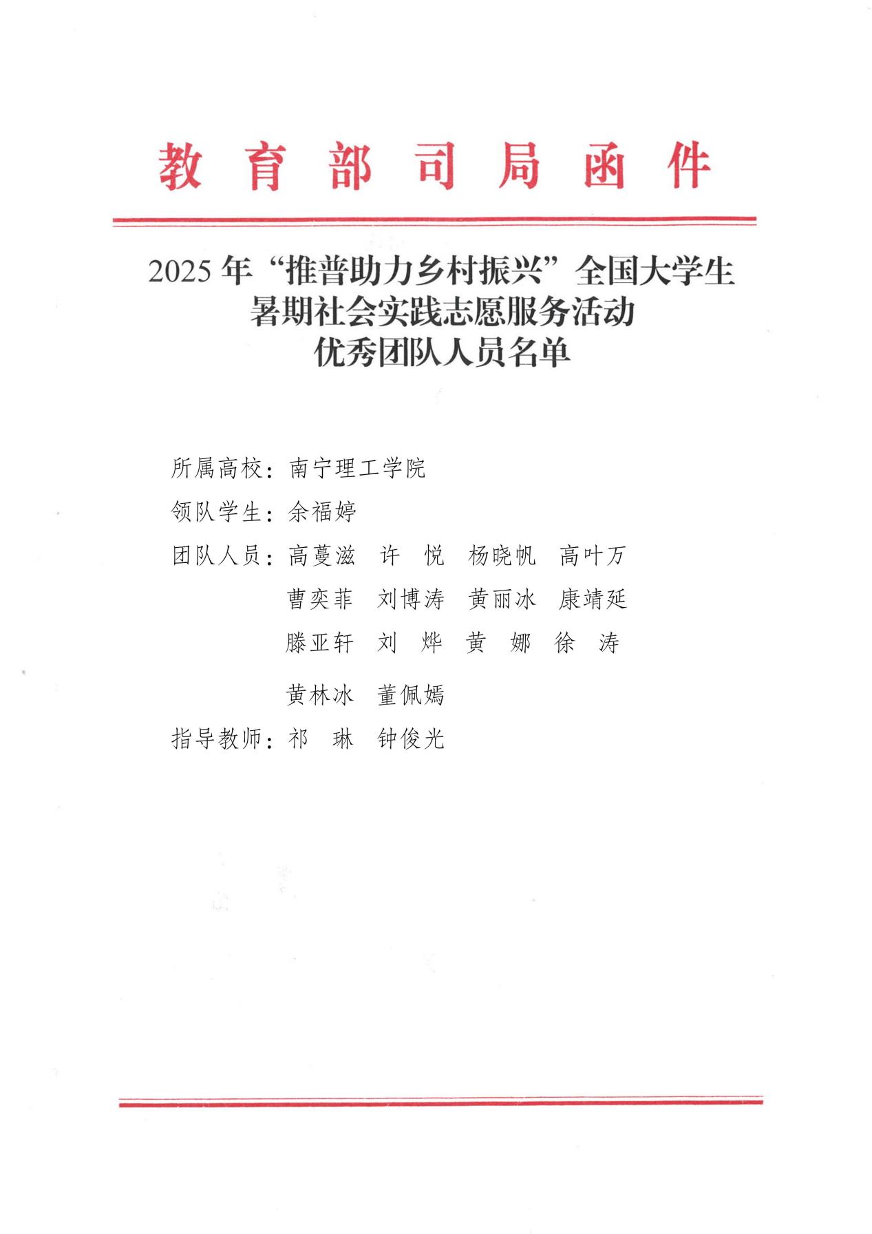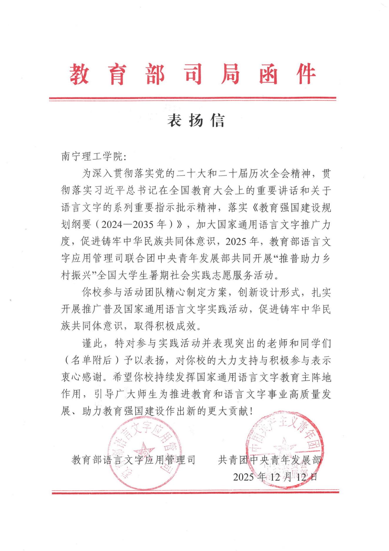 在教育部语言文字应用管理司与共青团中央青年发展部联合发起的2025年“推普助力乡村振兴”全国大学生暑期社会实践志愿服务活动中,KY开元“国旗映彩 桂遗薪火”志愿队从全国1000支队伍中脱颖而出,获评全国优秀团队!
