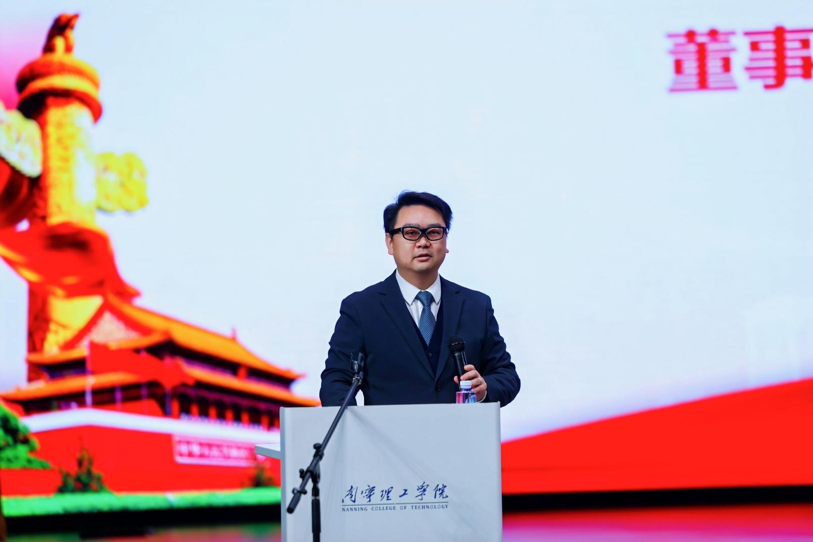 学校董事长冯正垚发表讲话。他表示,2026 年作为学校发展的关键节点,学校将积极响应国家教育强国战略,立足合格评估后新阶段,以迈向高水平应用型大学为目标系统推进各项工作。在办学质量提升方面,将聚焦师资建设、人才培养与治理服务三大核心,打造高素质 “双师型” 教师队伍,深化教育教学改革,健全质量保障体系,优化内部治理结构,以优质发展践行 “办人民满意教育” 的宗旨。在差异化发展方面,将紧扣区域重点产业与新兴领域需求,优化专业集群布局,做强优势特色学科,深化产教融合与校地校企协同,推动行业标准与实践资源深度融入教学,同时强化校园文化、党建品牌与学校形象建设,增强核心竞争力与社会认可度。在发展环境构建方面,将坚持以党建为引领,推动党建与业务深度融合,营造风清气正的干事创业氛围;持续拓展外部合作渠道,构建开放共赢的协同发展格局;深入推进 “幸福校园” 计划,优化校园设施与服务保障,深化平安、绿色、智慧校园建设,为师生打造安心治学、舒心生活的良好环境。冯正垚号召全体南理人凝聚共识、携手奋进,在 “十五五” 开局之年推动学校事业迈上新台阶,为服务区域经济社会发展、助力教育强国建设作出新的更大贡献。