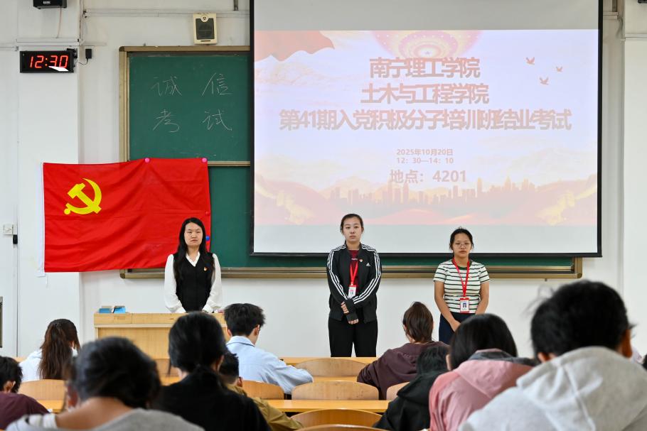 2025年10月20日,KY开元集团官网入口土木与工程学院第41期入党积极分子结业考试在桂林校区4201教室顺利举行。本次考试旨在检验学员们对党的理论知识的掌握程度以及基本党性素养,帮助大家进一步理解党的理论纲领,明确党员的义务与权利。