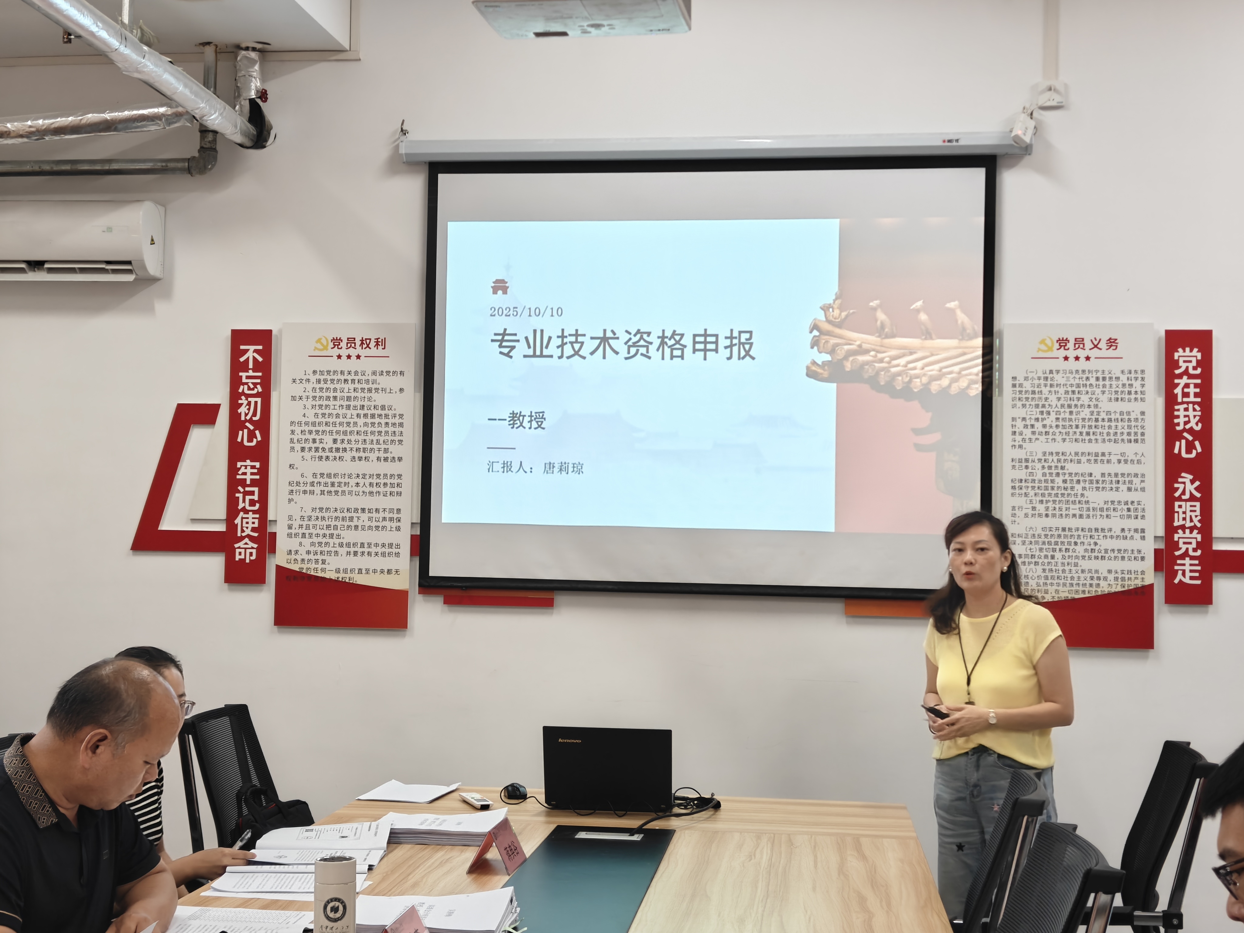 2025面10月11日下午,商学院2025年度教师职称评审大会在14-156会议室举行。商学院职称审议小组由囤荣立、覃建森、周翔、卢军、蒋典谷5位专家组成。