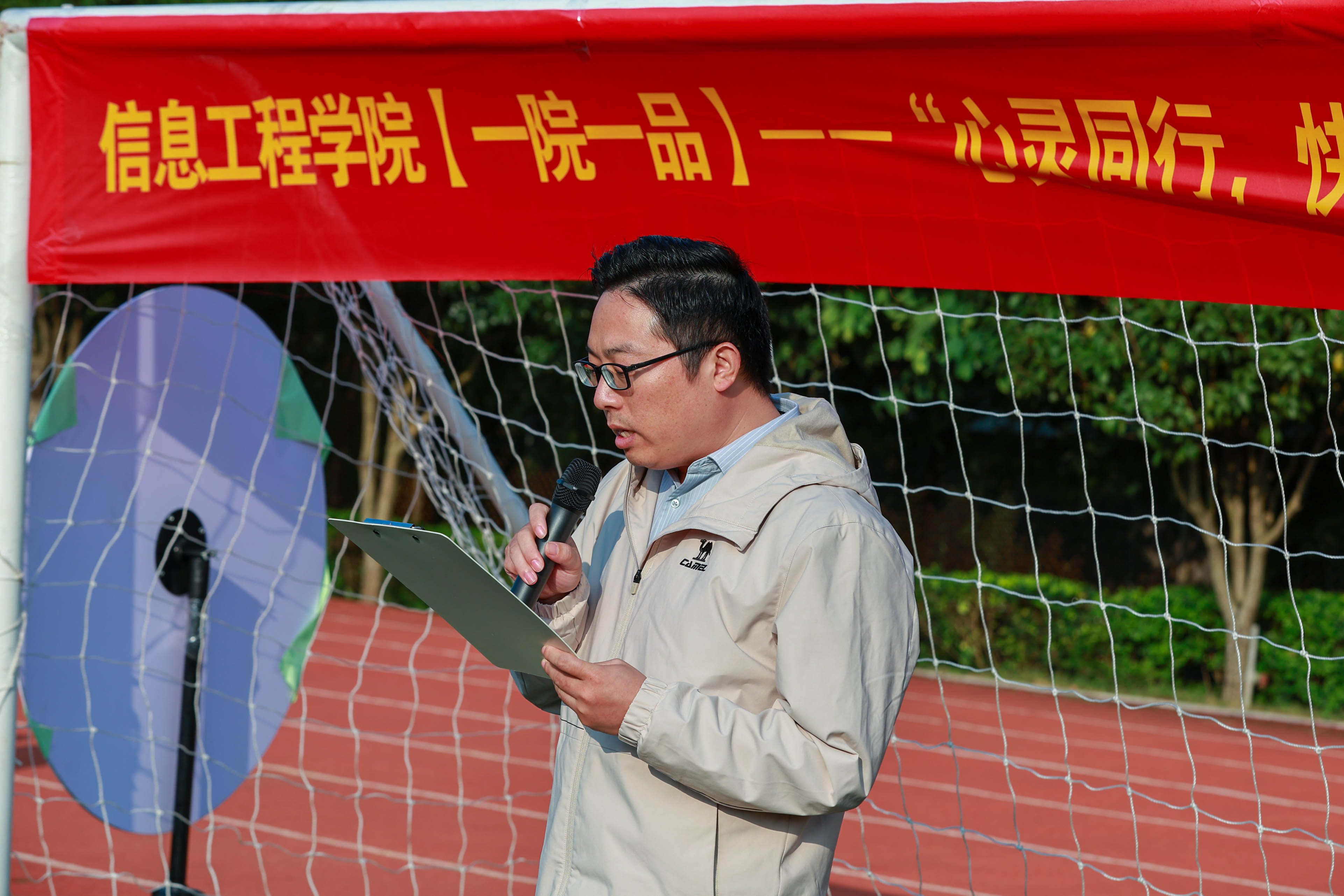 为深入贯彻落实“三全育人”工作理念,全面提升大学生心理素养,缓解学业与生活压力,营造积极健康的校园文化氛围,11月12日下午,信息工程学院在学校足球场开展【一院一品】——“心灵同行,快乐成长”团体心理辅导活动。出席本次活动的有信息工程学院党总支书记王帅老师、学生工作部(处)心理健康教育与咨询中心秦懿昭老师及学院多位辅导员老师,来自大一年级的50余名学生骨干积极参与活动,本次活动由苏桂英老师主持。