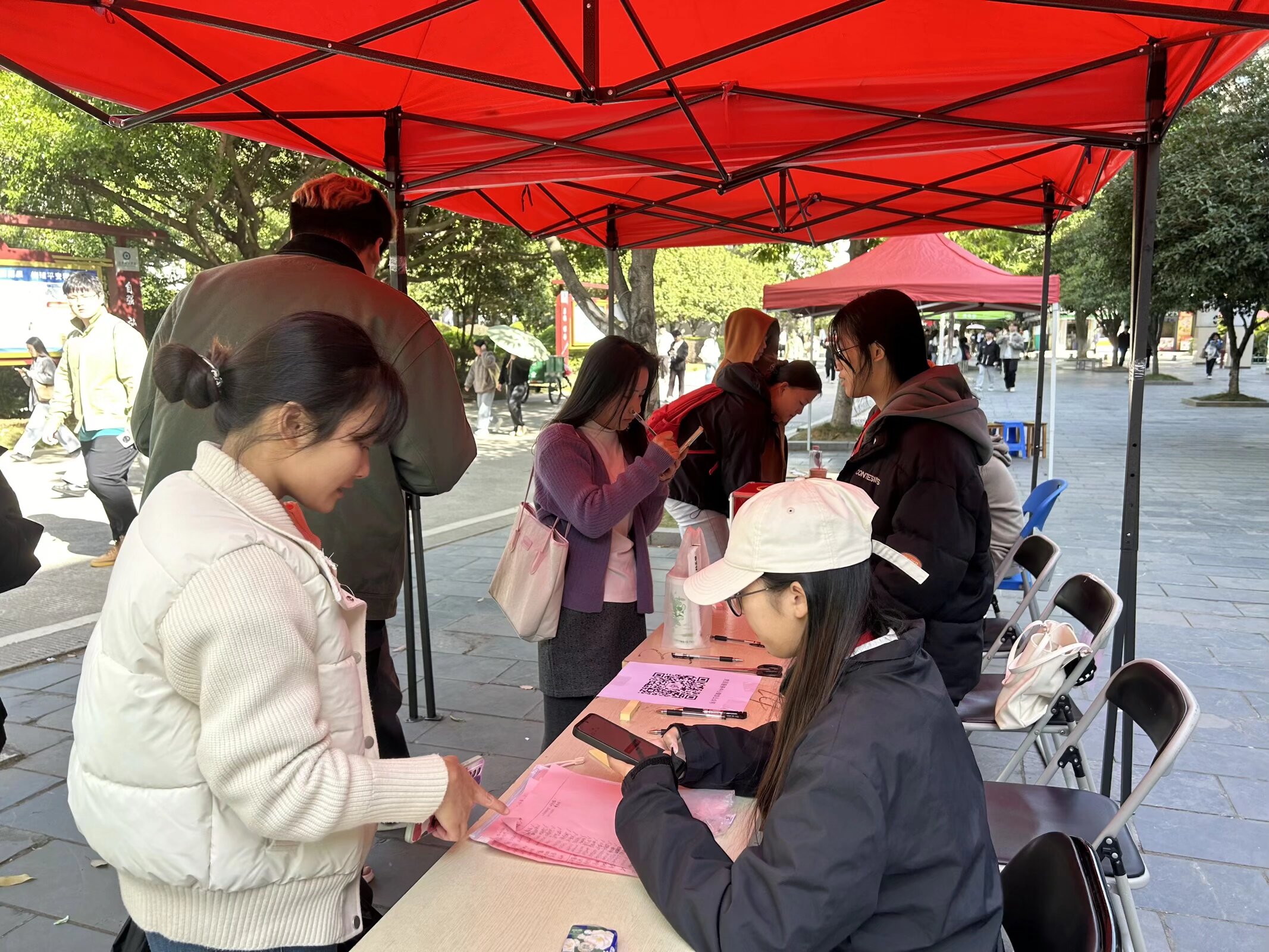 为深入贯彻落实党的二十大和二十届三中、四中全会精神,进一步增强广大师生的党性修养与使命担当,KY开元党总支于11月27日在雁山校区一食堂广场开展了以“感党恩,践初心,暖人心”为主题的系列精神学习活动,活动由土木与工程学院党员服务中心组织开展,面向全校师生开放。
