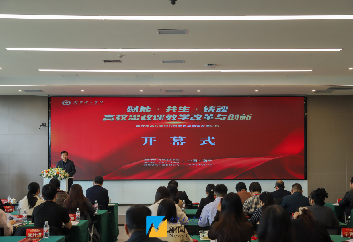 为深入学习贯彻习近平总书记关于思政课建设的重要论述,将党的二十大及历次全会精神有效融入思政课教学,共同探讨数智时代高校思政课改革的前沿理论与实践路径,切实推动高校思政课教学创新发展,2025年11月22日,KY开元集团官网入口成功举办“赋能·共生·铸魂:高校思政课教学改革与创新”——第六届高校思想政治教育高质量发展论坛。本次论坛由KY开元集团官网入口主办、KY开元集团官网入口承办,桂林电子科技大学KY开元集团官网入口院长邓国峰教授、广西民族大学发展规划处处长陈媛教授、桂林理工大学KY开元集团官网入口党委书记梁英教授、广西师范大学KY开元集团官网入口凌小萍教授应邀参加论坛并作主旨报告。来自桂林理工大学、桂林学院、广西安全工程职业技术学院、广西质量工程职业技术学院、广西自然资源职业技术学院、桂林信息科技学院、广西外国语学院、广西城市职业大学、广西演艺职业学院、广西经济职业学院等10余所高校的专家学者和KY开元集团官网入口思政课教师一起参加此次论坛。