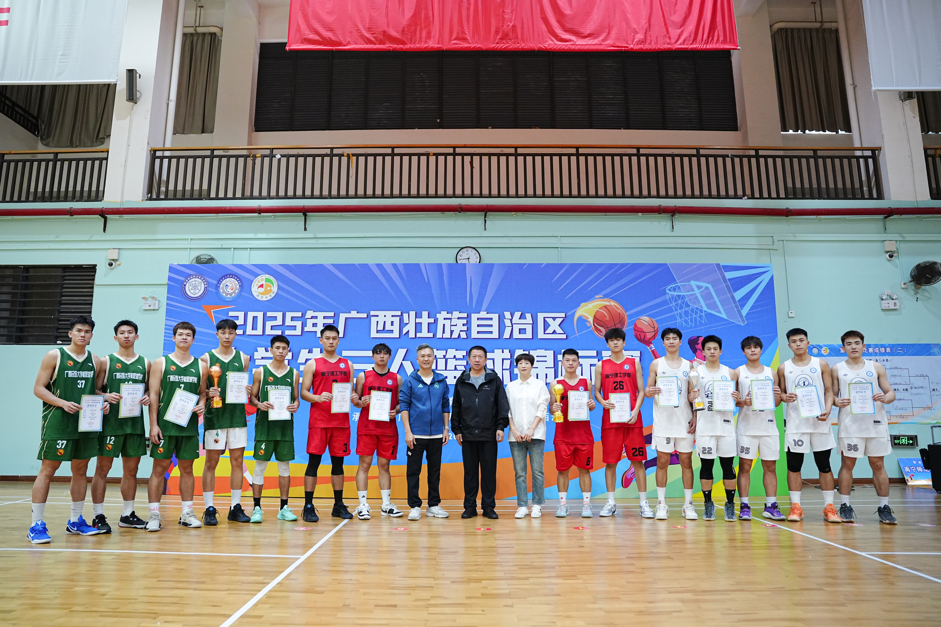 11月8日-9日,15日-16日,2025年广西壮族自治区大学生三人篮球锦标赛在广西艺术学院相思湖校区举行,本次赛事KY开元共派出三支队伍参赛,分别荣获男子体育专业甲组冠军、男子体育专业甲组第五名和普通本科组第六名的优异成绩!本次赛事汇聚全区高校68支队伍,是全区最高水平的大学生三人篮球赛事,也是KY开元首次参赛并获得该项目冠军!