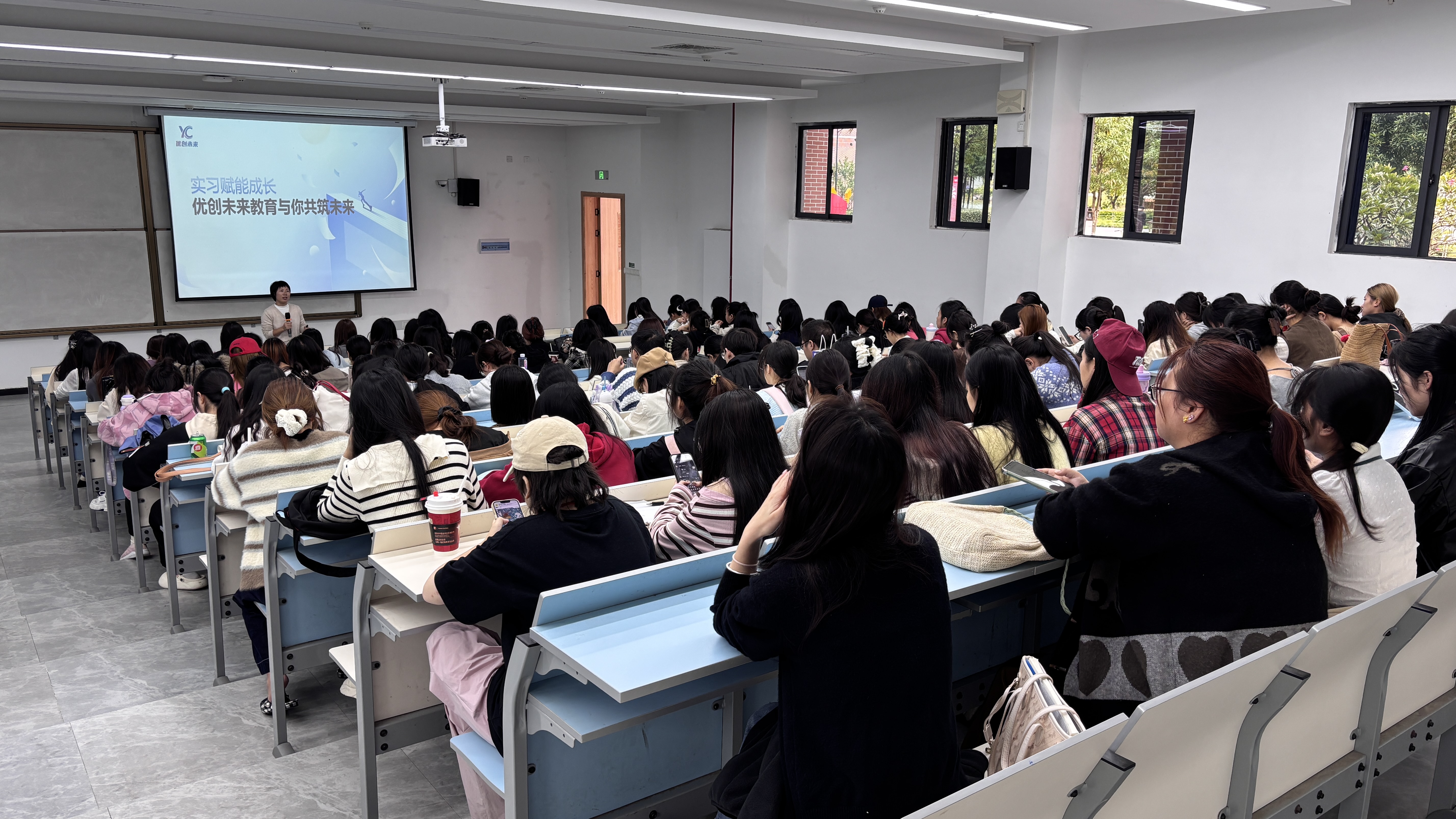 为深化产教融合,拓宽学生实习就业渠道,11月10日,文理学院邀请深圳优创未来教育有限公司到校举办招聘宣讲会。本次活动由周秀欣老师主持,企业宣讲负责人孙绍霞经理通过企业概况、岗位需求及实习保障体系等方面向同学们展开详细介绍。