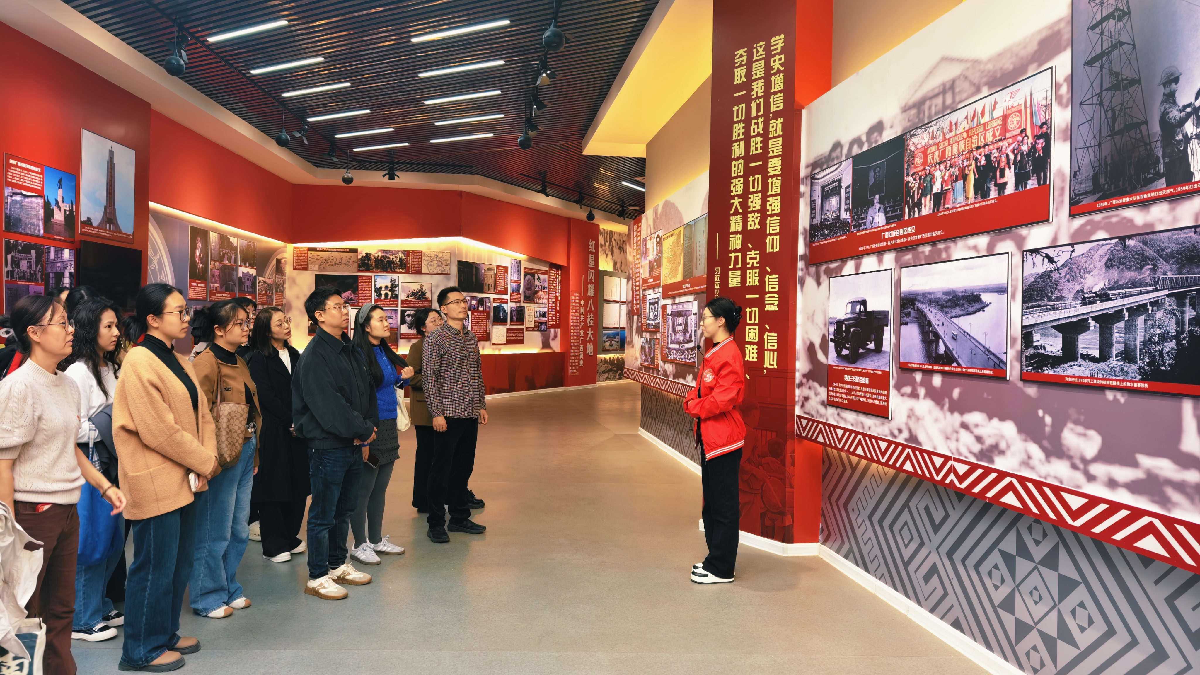 为深入学习贯彻习近平新时代中国特色社会主义思想,贯彻落实新时代全面从严治党要求,推进清廉学校建设向纵深发展,11月14日,学院党总支书记秦磊、副院长尹登科、分团委书记徐远菁同各师生党支部书记和党员代表一行,赴广西师范大学红色教育基地“中国共产党简史展”开展专题学习,汲取百年党史中的清廉力量。