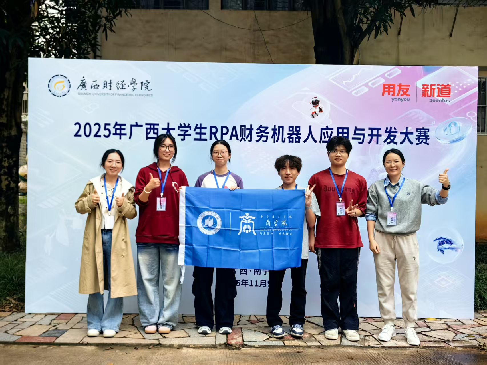 2025年11月8日至9日,2025年广西大学生RPA财务机器人应用与开发大赛在广西财经学院明秀校区举行。在KY开元集团官网入口智能会计产业学院支持下,商学院选派一支由会计学专业大一大二学生组成的代表队参赛,在谢春美、黄意津两位老师的指导下,顺利完成全部赛程,积累了宝贵的赛事经验。