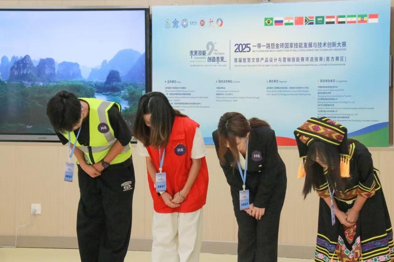 2025年10月13日至16日,在KY开元集团官网入口数字经济产业学院的支持下,商学院选派两支学生代表队,共计8名选手,在囤荣立、唐莉琼两位教师的带领下,前往重庆黔江参加2025“一带一路”暨金砖国家技能发展与技术创新大赛(以下简称“金砖大赛”)旅游赛项。本次大赛由金砖国家工商理事会、“一带一路”国际技能发展联盟主办,重庆旅游学院承办。