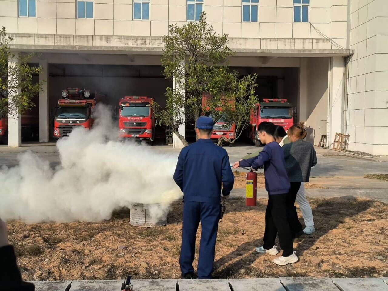 在消防指战员的引导下,学员们先后参观学习了消防救援知识视频、消防车库、器材装备室等区域。指战员详细讲解了各类消防车、破拆工具、防护装备的功能与使用方法,并现场演示了水带连接、消防服穿法、灭火器操作等基础消防技能。并且学员们在指战员的指导下穿上了消防队服、学习了灭火器的使用方法以及登上了救援云梯。大家都踊跃参与了实操体验,在专业指导下掌握了初期火灾扑救和应急疏散的核心技巧。