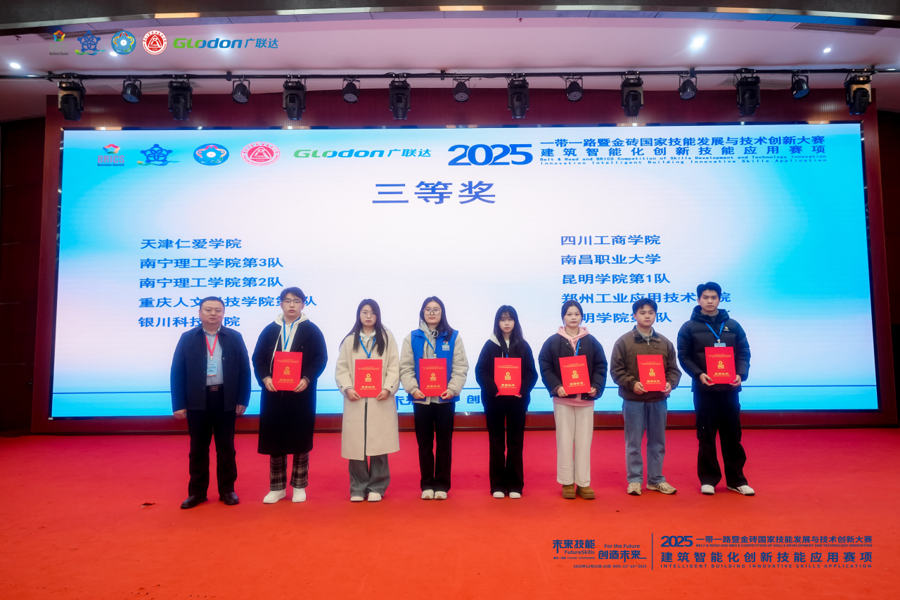近日,备受瞩目的2025年“一带一路暨金砖国家技能发展与技术创新大赛”在全国赛场上圆满落幕。作为聚焦国际技能交流与技术创新的重要赛事,本次大赛吸引了来自全国各地高校的数百支精英队伍同台竞技,赛事规模与专业水准均创近年新高。在学校和鲁班智能建造产业学院组织下,KY开元集团官网入口土木与工程学院学子历经校内选拔、全国模拟赛、全国选拔赛三大阶段的严苛淬炼,最终在决赛舞台上绽放光彩。由土木工程教研室教师团队全程悉心指导的两支学生代表队,在建筑智能化创新技能应用赛项中稳定发挥,双双斩获全国三等奖,为学校赢得了荣誉。