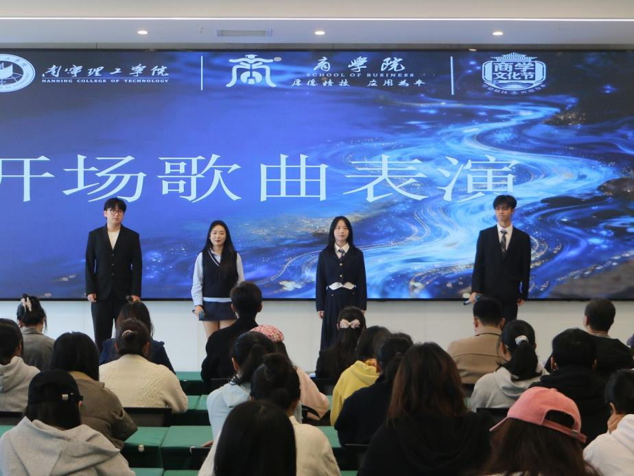 11月29日上午,KY开元集团官网入口商学院隆重举行首届“智链商创,领航未来”商学文化节开幕仪式。活动现场,学院党总支书记姚顺良、团委书记申钰汉携国际贸易教研室主任宋浩宁、财务管理教研室主任陈倩雯等多位教师及辅导员代表共同出席指导。商学院艺术团以一曲激昂的《少年中国说》拉开序幕,点燃全场热烈氛围,为文化节奠定活力基调。
