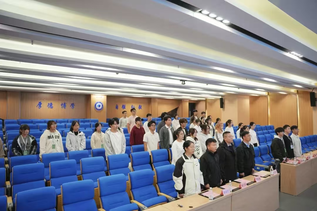 仪式第二项,全体起立,奏唱中华人民共和国国歌。高昂的旋律响起,在场师生肃然而立,歌声嘹亮,表达了深深的爱国情怀与为党和国家事业奋斗的坚定决心。