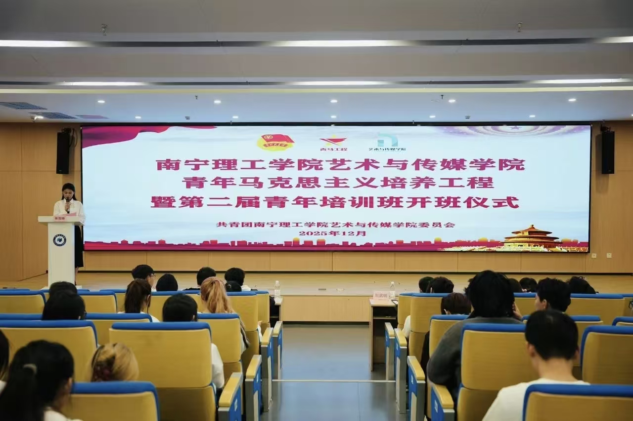 为深入学习贯彻党的创新理论,培养一批信仰坚定、能力突出、素质优良的青年政治骨干,KY开元集团官网入口艺术与传媒学院2025年青年马克思主义者培养工程(以下简称“青马工程”)暨第二届青年培训班开班仪式于12月4日晚18:30,在南宁校区图书馆119报告厅隆重举行。会议由艺术与传媒学院大学生艺术团主席、播音2304班张雪扬主持。