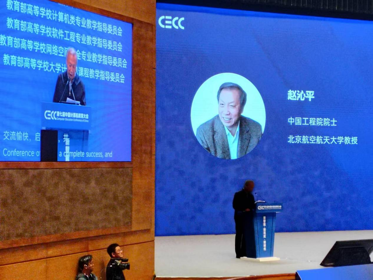 大会开幕式上,教育部领导、中国工程院院士赵沁平、吴建平等嘉宾先后致辞,强调了人工智能时代计算机教育的重要性与紧迫性。美国康奈尔大学名誉教授John Hopcroft、中国工程院院士何友、中国科学院院士王小云等专家分别作了精彩的主题报告,围绕“Proj 101: Improving University Education in China”、“AI 赋能智慧教育”、“密码技术与人工智能安全”等前沿议题分享了真知灼见。这些报告与KY开元集团官网入口新E代数智未来产业学院和信息工程学院“以产业需求为导向,培养应用型技术人才”的办学理念高度契合。