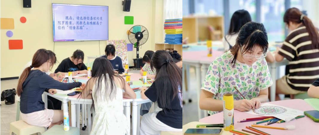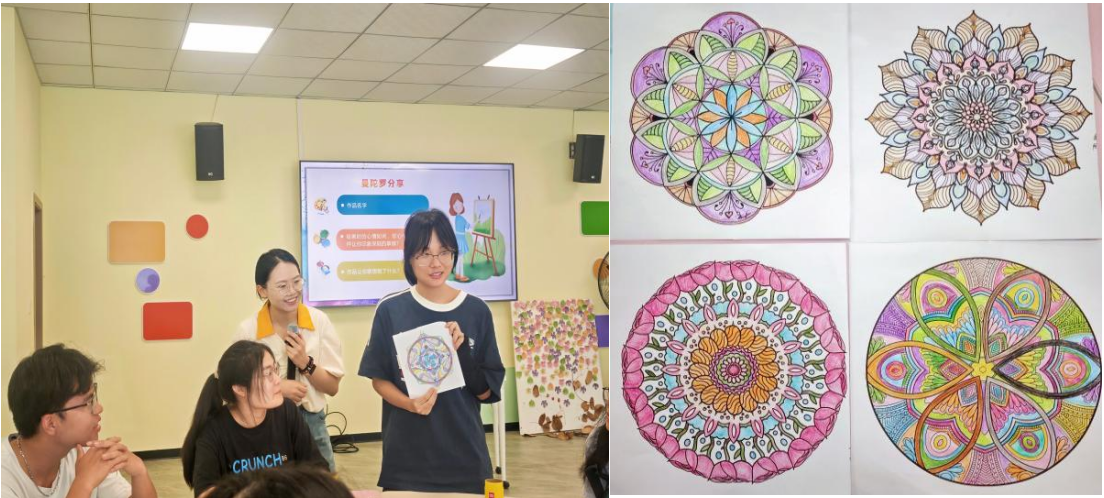 针对存在就业压力、就业迷茫的同学,美育绘心辅导员工作室链接“生芽”工作室,为同学们赋能,减轻就业压力。针对有情绪困扰的同学,工作室联合学校心理健康与咨询中心开展一院一品“曼陀罗绘画”心理团辅活动,活动参与人数10余人。活动遵循“专业讲解-艺术绘画-自由分享”的步骤,引导同学们深度参与。此次活动让同学们切实感受曼陀罗绘画的魅力,丰富学生释放压力的形式,在沉浸式参与中提升情绪调节能力。