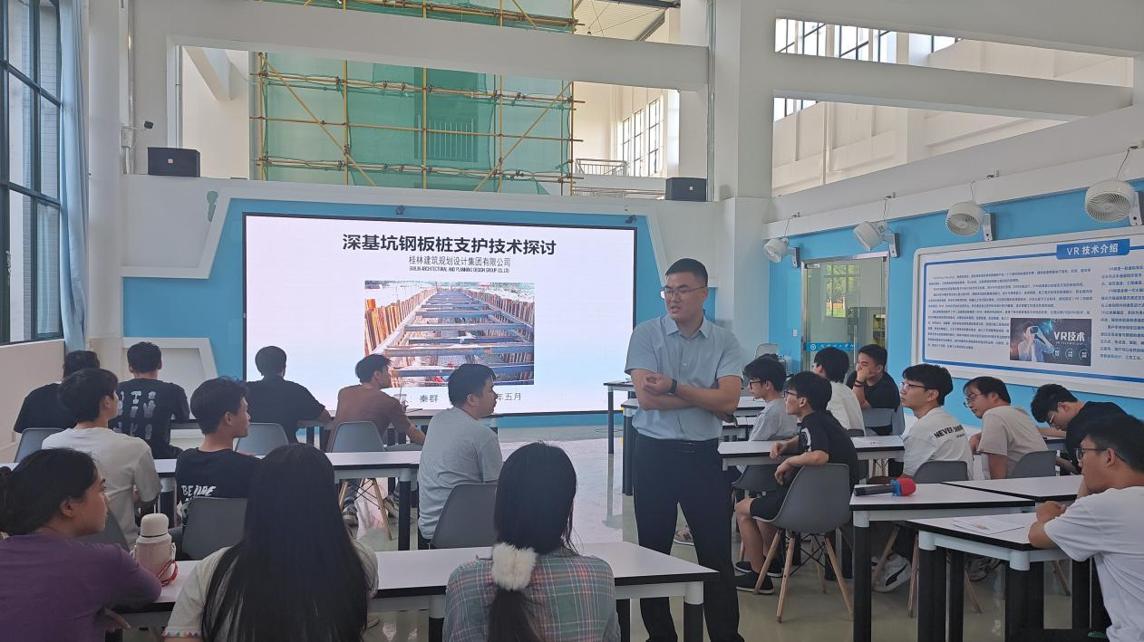 2025年5月9日,由鲁班绿智数字智能产业学院支持的产业专家进校园学术讲座活动在数字建造工程中心顺利举行。本次学术讲座邀请桂林建筑规划设计集团有限公司勘察设计分院副院长、高级工程师秦群主讲,土木22级150多名学生参加。