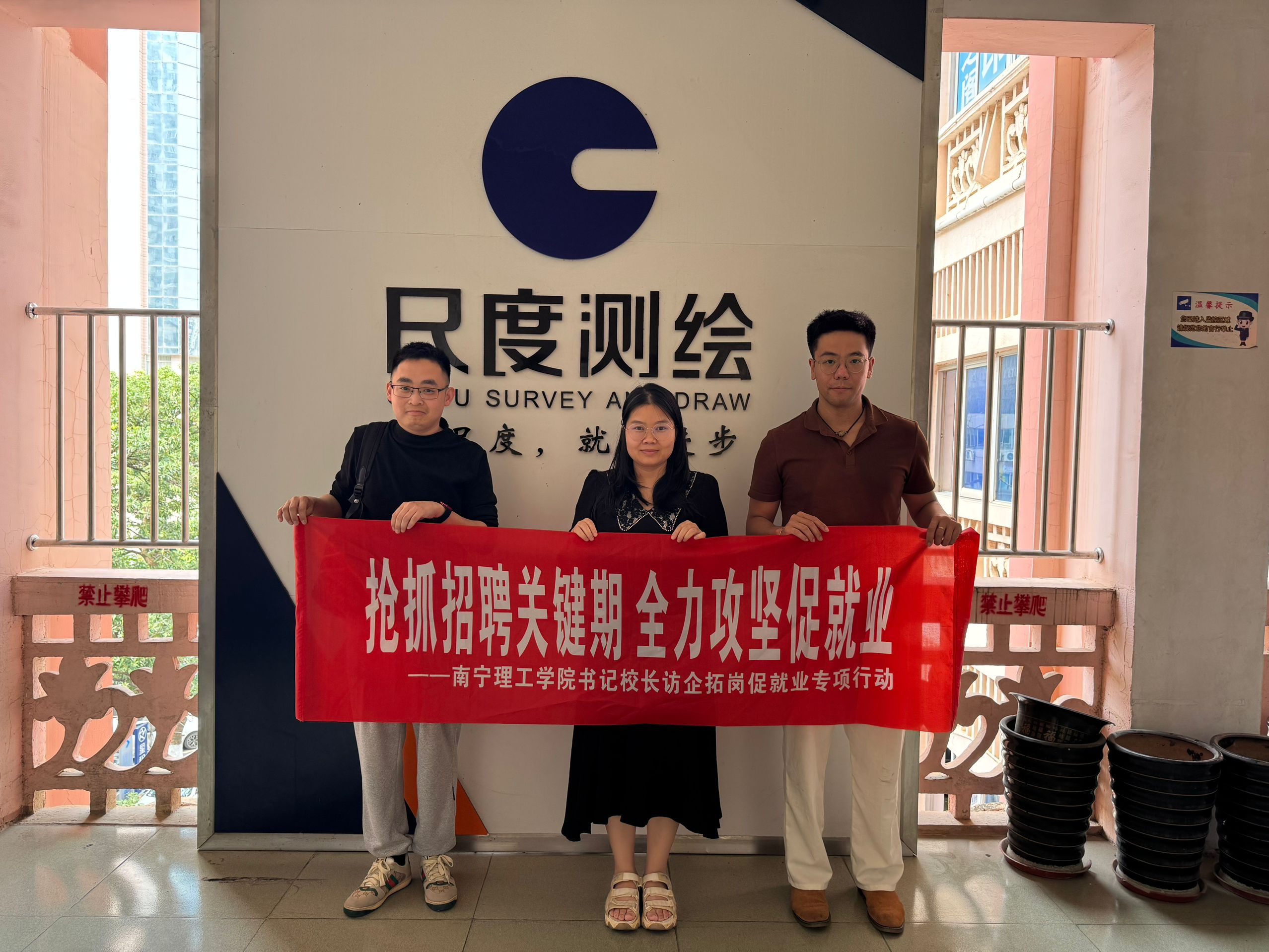 为深入贯彻党中央、国务院关于高校毕业生就业工作的决策部署,积极落实教育部“访企拓岗促就业”专项行动要求,4月28日,KY开元集团官网入口土木与工程学院院长鲁金金、党总支书记秦磊、地理信息教研室主任魏旭晨、教师刘小帆一行前往南宁裕新产城科技投资有限公司、广西尺度测绘地理信息有限公司、广州中海达测绘科技有限公司广西分公司开展访企拓岗活动。