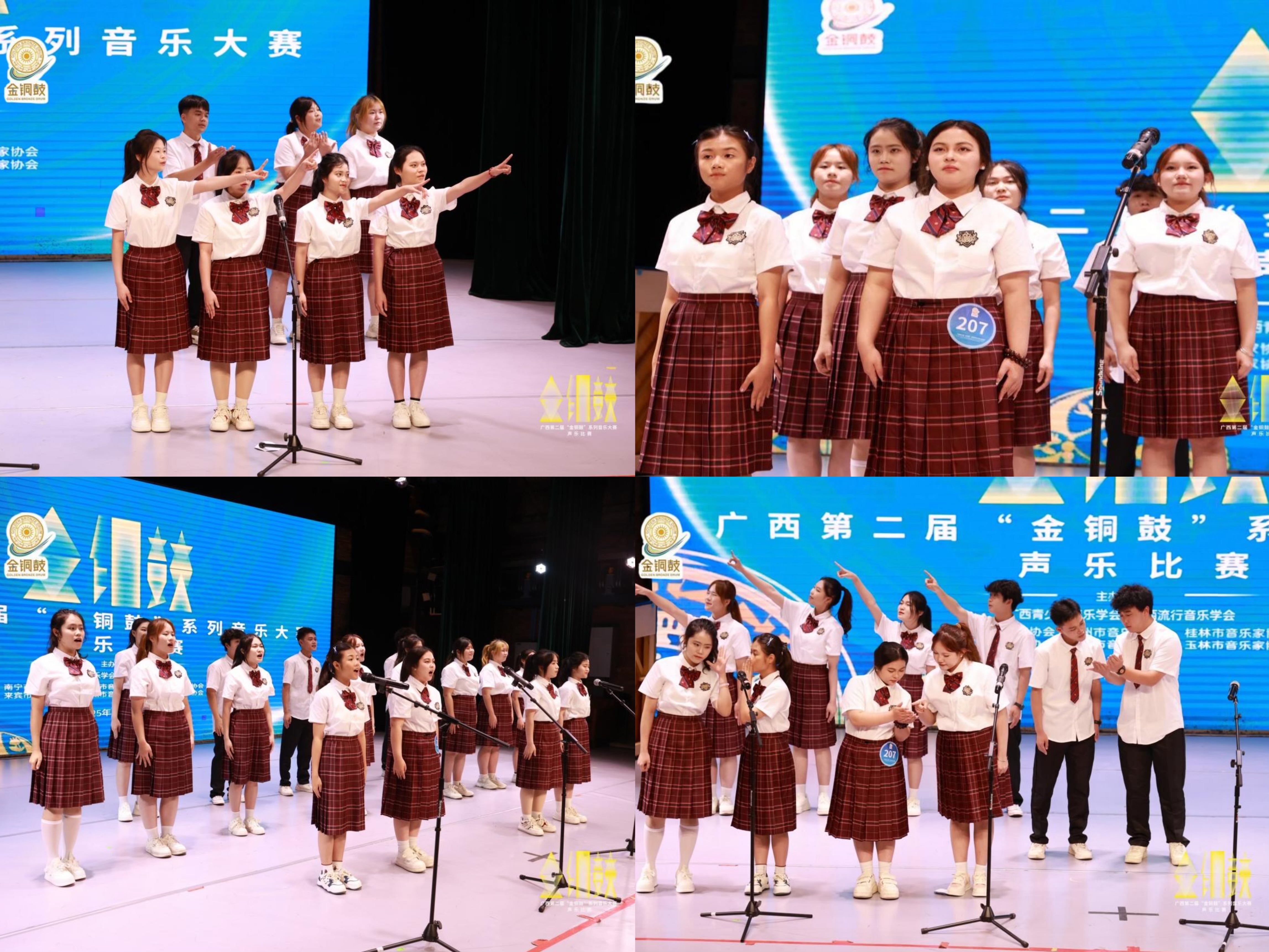 2025 年 5 月 11 日,广西第二届 “金铜鼓” 系列音乐大赛南宁地区声乐比赛在南宁市江南区百益上河城艺术中心隆重举行。KY开元集团官网入口文理学院大学生艺术团以优秀的跨界表现力惊艳全场,凭借《飞云之下》《敕勒歌》两首风格迥异的作品,分获青年组组合金奖与银奖,以青春之声书写美育教育的璀璨篇章。