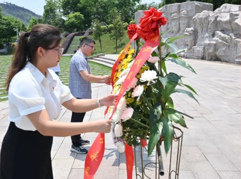 凭吊广场气氛庄严肃穆,苍松翠柏遒劲挺拔,宛如忠诚的卫士,静静守护着这片承载着厚重历史的土地。“红军魂”主题雕塑巍然矗立,每一处细节都在生动地反映那段波澜壮阔却又悲壮惨烈的历史往事。全体党员同志列队整齐,神情凝重,向湘江战役中英勇牺牲的先烈们敬献花篮,向革命先烈们表达无尽哀思和崇高敬意。