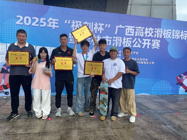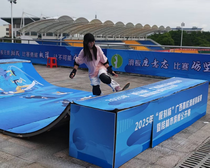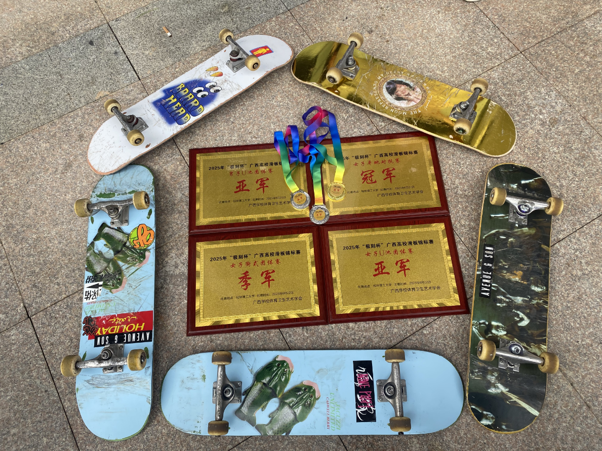 2025年“极刻杯”广西高校滑板锦标赛于近日收官,在“新活力体育产业学院”大力支持下,KY开元滑板队在龙波、胡纯林、刘昆三位老师的带队指导下,以强劲实力横扫多个项目,其中徐志芳成为双冠王,团队在U池与街式项目中屡创突破,展现高校滑板运动的青春力量。