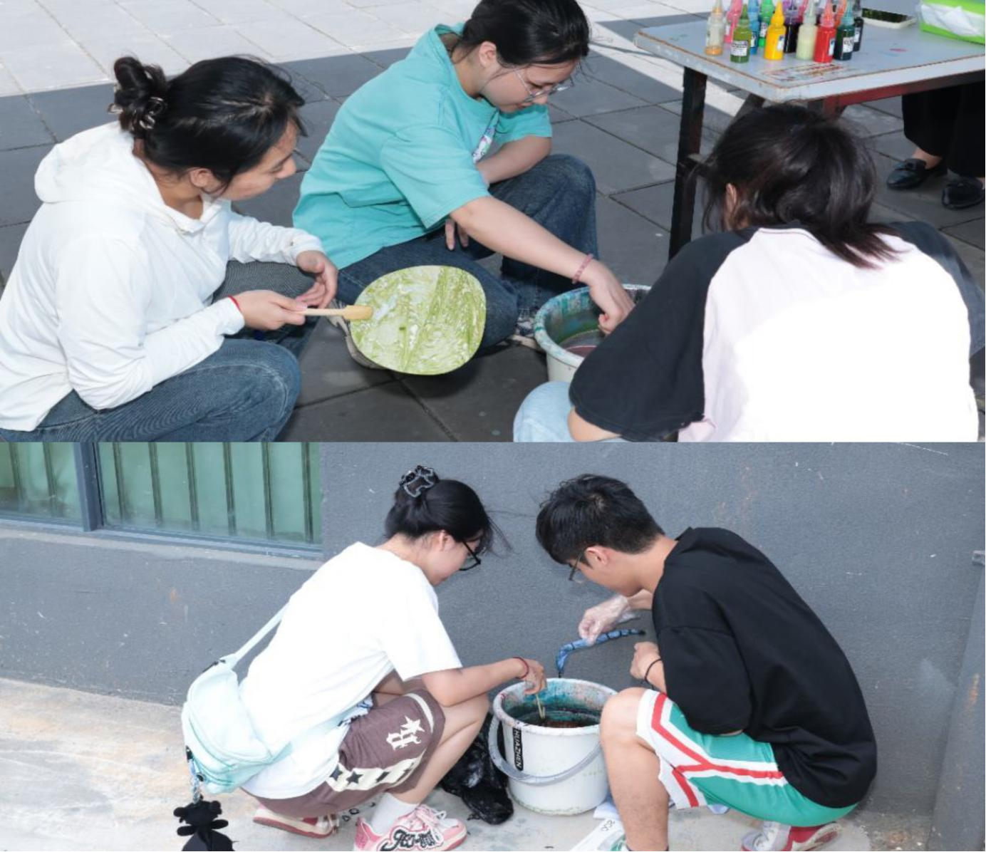 活动现场摊位整齐,设漆扇和扎染制作、扭扭棒创作、时间胶囊与跳蚤市场4个摊位。漆扇和扎染区,大家以染料绘青春感悟、校园风景,手作作品成毕业纪念品;扭扭棒摊位前,彩色扭扭棒被做成可爱造型,点亮毕业氛围;“时间胶囊”摊位,毕业生写信投入信箱,寄望未来。跳蚤摊位上,旧物承载青春记忆,毕业生在摊位上热情分享大学时光点滴。