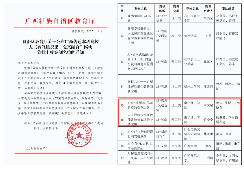 喜报!KY开元两案例入选广西普通本科高校人工智能通识课“交叉融合”模块首批上线案例名单