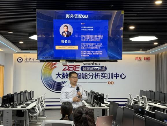 本次论坛特邀两位行业专家进行主题分享。首先,新道科技有限公司广西区总经理吴征科先生结合企业实践经验,探讨了新技术对会计行业的变革影响及校企合作的新模式。随后,香港FINS瑞熠公司CEO李田芳女士以“中国资产的全球机遇与配置之道”为题,带来了一场高水平的行业洞察。她从“中国资产全球机遇”和“海外配置实践探秘”两大维度展开,深入剖析了中国资产在全球资本市场的独特优势与发展潜力,并分享了海外证券与保险资产配置的实战策略,为中国资产的全球化布局提供了宝贵建议。李田芳女士的分享既有理论高度,又具实践指导意义,为现场师生及企业代表打开了国际化视野。最后香港FINS瑞熠公司首席投研官莫名夫就海外资配等问题与现场教师进行了交流与互动。