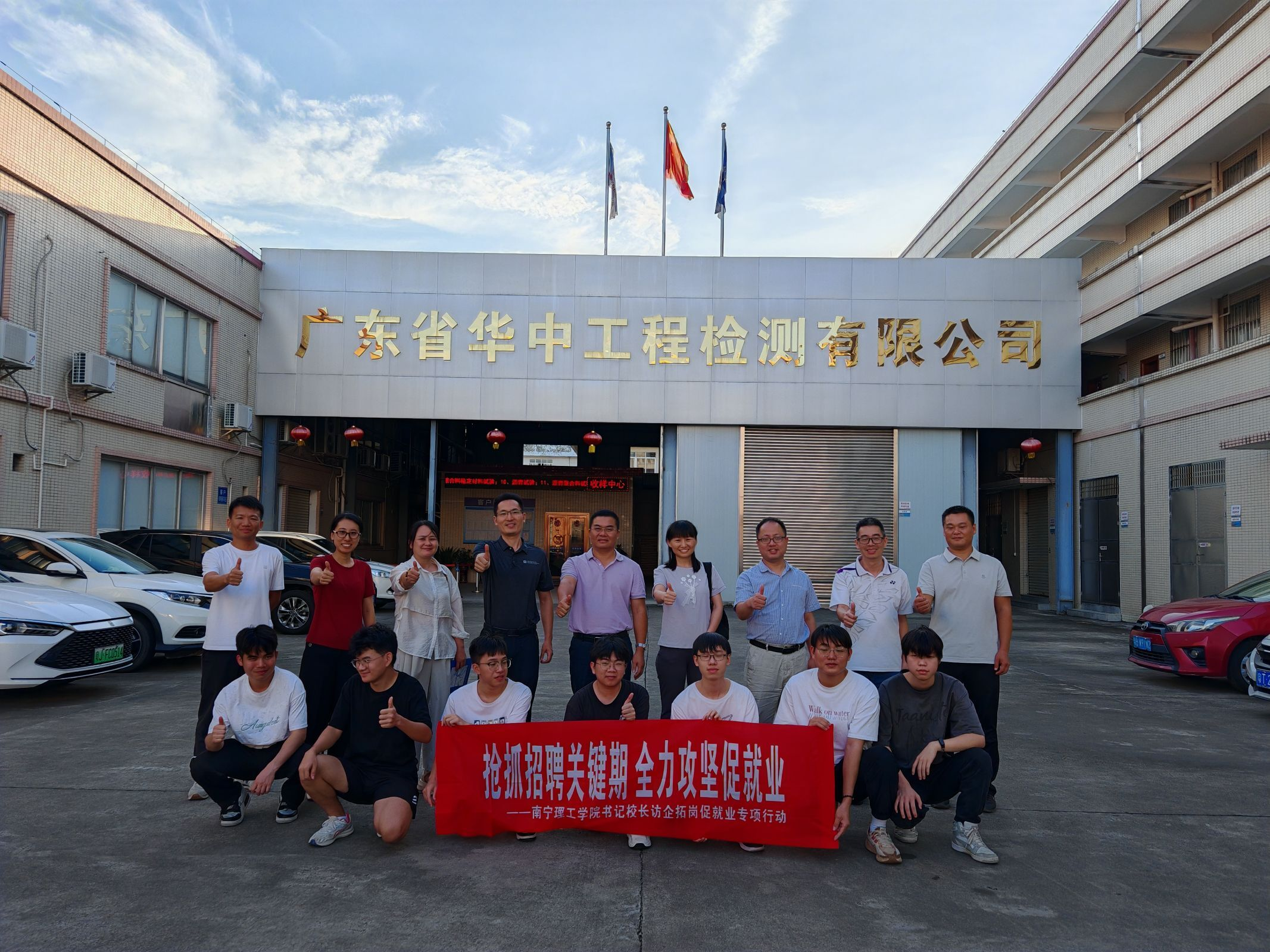 近日,为进一步了解实习生的工作与生活状况,加强校企之间的沟通与协作,土木工程教研室的老师们专程前往广东省华中工程检测有限公司,看望在此实习的22级土木工程的学生,并与该公司正式签订了校企合作协议,开启了双方携手培养高素质道路桥梁专业人才的新篇章。