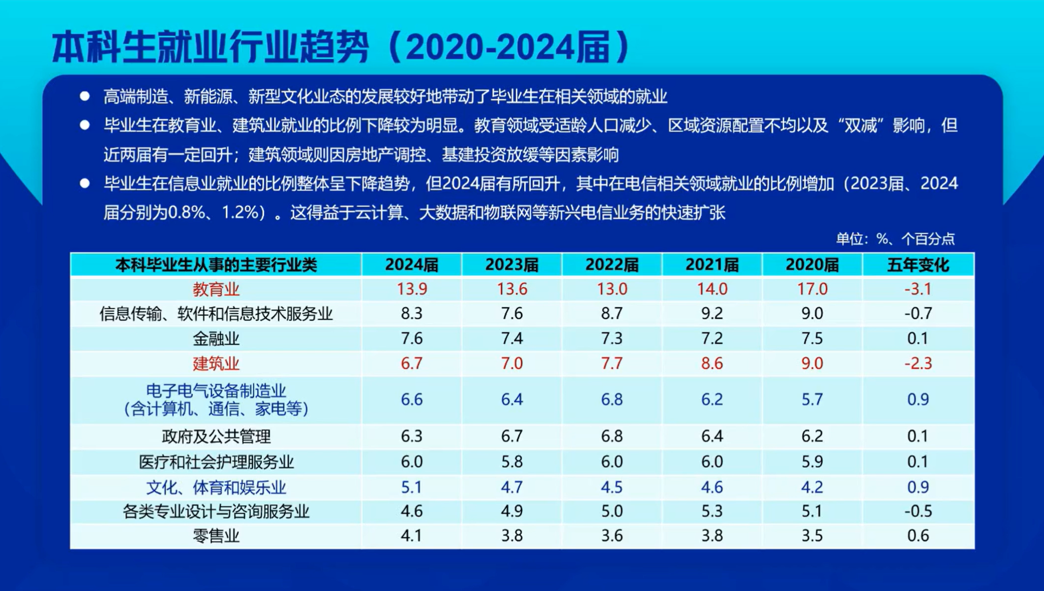本次讲座由麦可思研究院副院长马妍主讲,深度剖析了当前本科毕业生在就业结构、质量以及能力需求方面呈现的新特点与新趋势,并探讨了这些变化对高校人才培养提出的新要求与新挑战。讲座聚焦数字经济转型背景,揭示了人才需求格局的深刻变化及其对教育教学改革的启示。