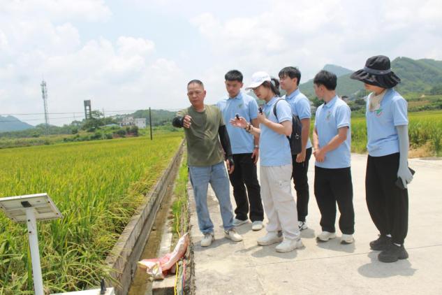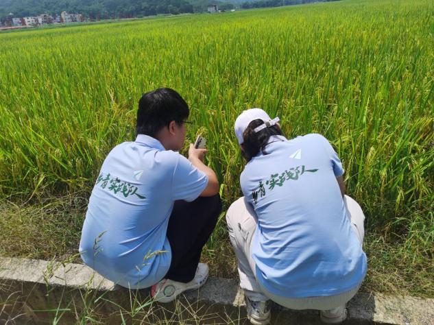 图为实践队员观察水稻生长情况。韦河杉 供图