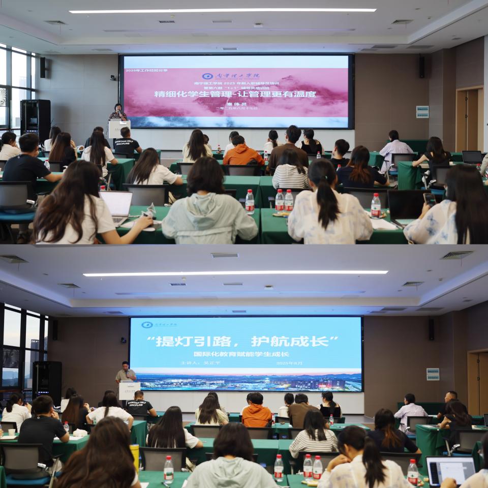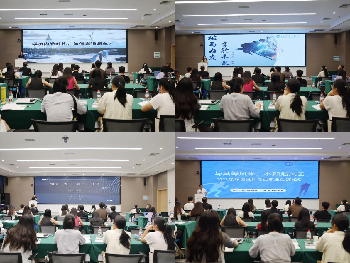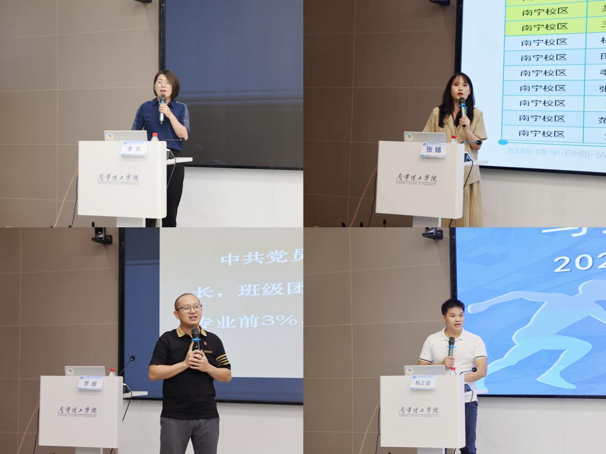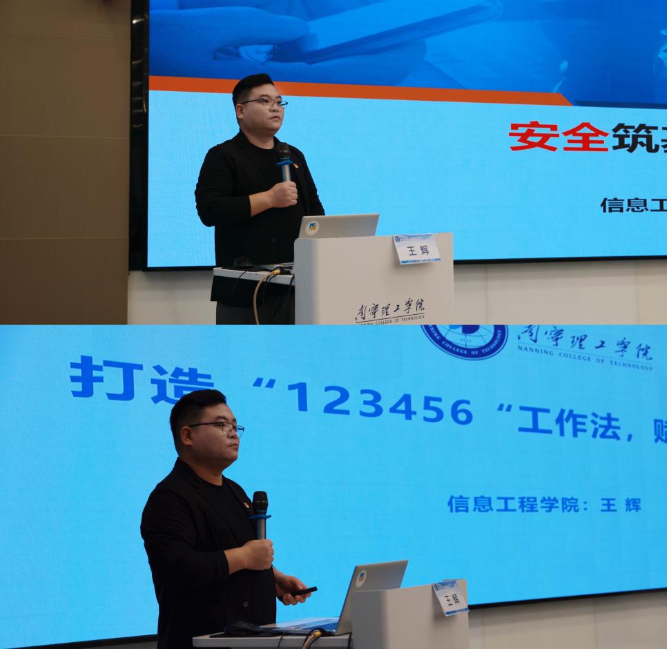 信息工程学院分团委书记王辉立足新时代高校育人工作的战略高度,分别以《安全筑基,规划导航》和《打造“123456”工作法,赋能学生就业》为题,深入浅出地擘画了“就业—安全—心理”三位一体、协同发力的工作范式。结合典型案例,把宏观政策与微观实践无缝衔接,讲述了他对“三全育人”从理念认知到实践落地的探索。土木与工程学院辅导员秦伟灵、信息工程学院党总支书记助理吴正平两位“最美学生工作者”同台开讲,分别以《精细化学生管理-让管理更有温度》和《提灯引路,护航成长》为题,用鲜活故事诠释“润物无声、育人无痕”的初心使命;而辅导员精品主题班会大赛特等、一等、二等奖获得者李欢、张娣、罗超、杨正益四位辅导员轮番登台,通过情景再现、微课展示、互动问答等形式,把一堂堂有高度、有温度、有深度的职业生涯规划主题班会搬上讲台,向大家具体展示了班会育人的生动事例和突出实效。