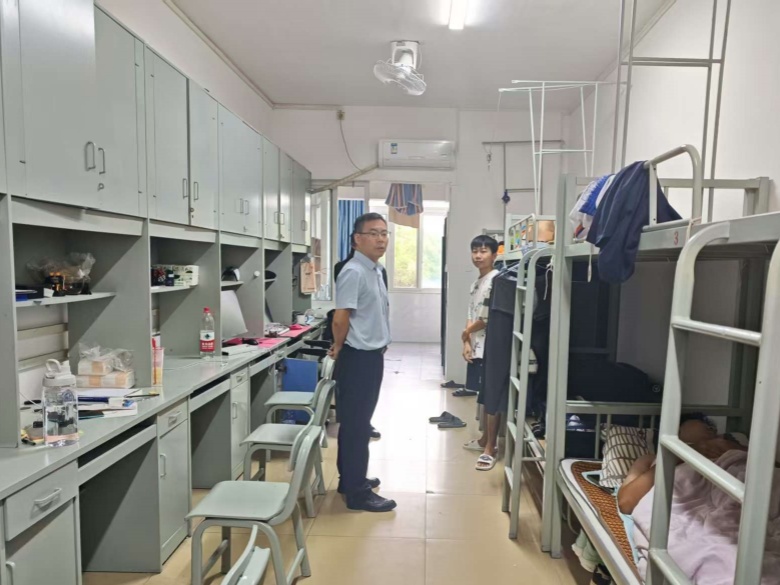 在食堂检查中,重点围绕食品安全管理全流程开展细致排查,详细检查了厨具消毒记录、工作人员健康证及食品留样情况,查看了米、面、油、肉、蛋等大宗食材的采购台账、检验检疫证明及保质期。在学生公寓检查中,重点对学生违规使用大功率用电器、私拉电线、宿舍卫生等进行检查。在实验室、教室、办公区域等重点区域检查时,就消防设施设备完好情况、电气线路运行状态及日常维护管理等开展细致排查;同时还对电梯、机房、消防控制室等关键设施区域进行重点检查,确保安全隐患及时发现、整改到位。