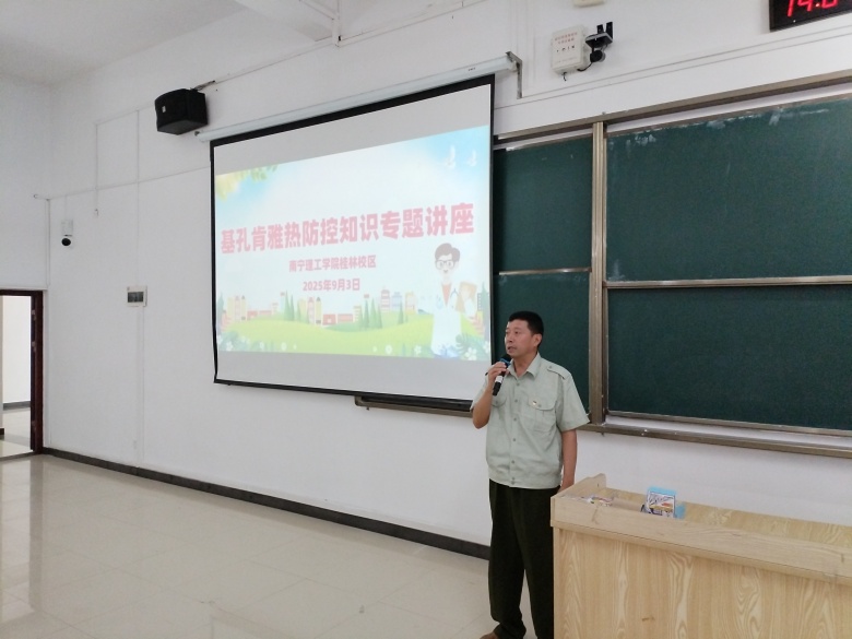 为进一步加强KY开元“基孔肯雅热”防控工作,切实保障全体师生的健康安全,9月3日下午,KY开元特邀桂林市疾病预防控制中心寄生虫病、地方病防制科科长潘海到校,开展“基孔肯雅热”传染病防控知识讲座,后勤保卫处处长钟木生、土木与工程学院党总支书记秦磊、信息与工程学院党总支书记王帅、后勤保卫处副处长温怡,以及全体辅导员、后勤行政干部、宿管员、保洁员、餐饮服务人员等200余人参加。