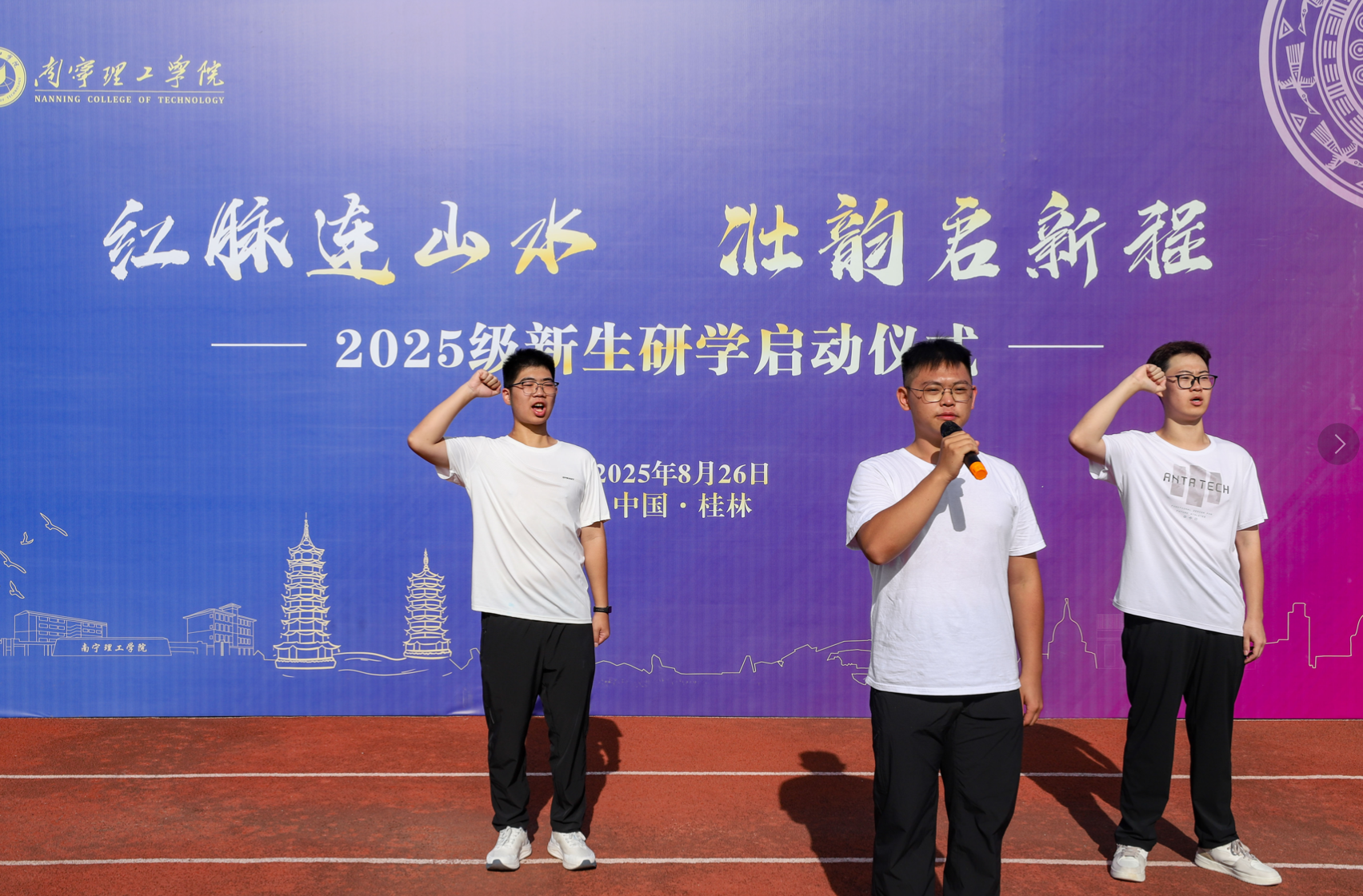 2025年8月26日上午,KY开元集团官网入口“红脉连山水,壮韵启新程”2025级新生研学启动仪式在桂林雁山校区和南宁东盟校区运动场同步举行。学校领导冯正垚、杨鲜丽、韩乔、郑方兵、马纪涛,各学院党总支书记、辅导员与2025级新生代表齐聚现场,共赴这场兼具仪式感与教育意义的研学开篇。